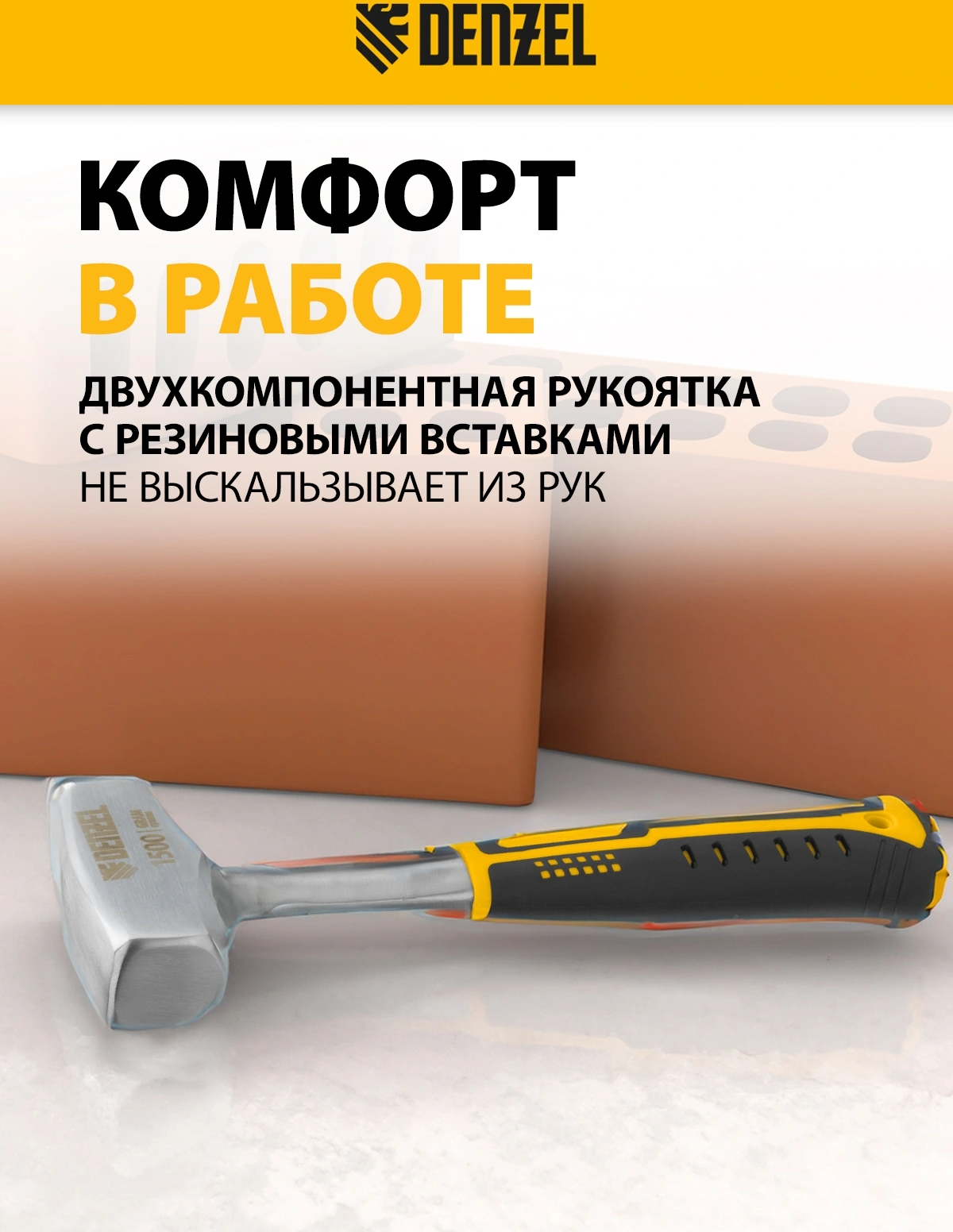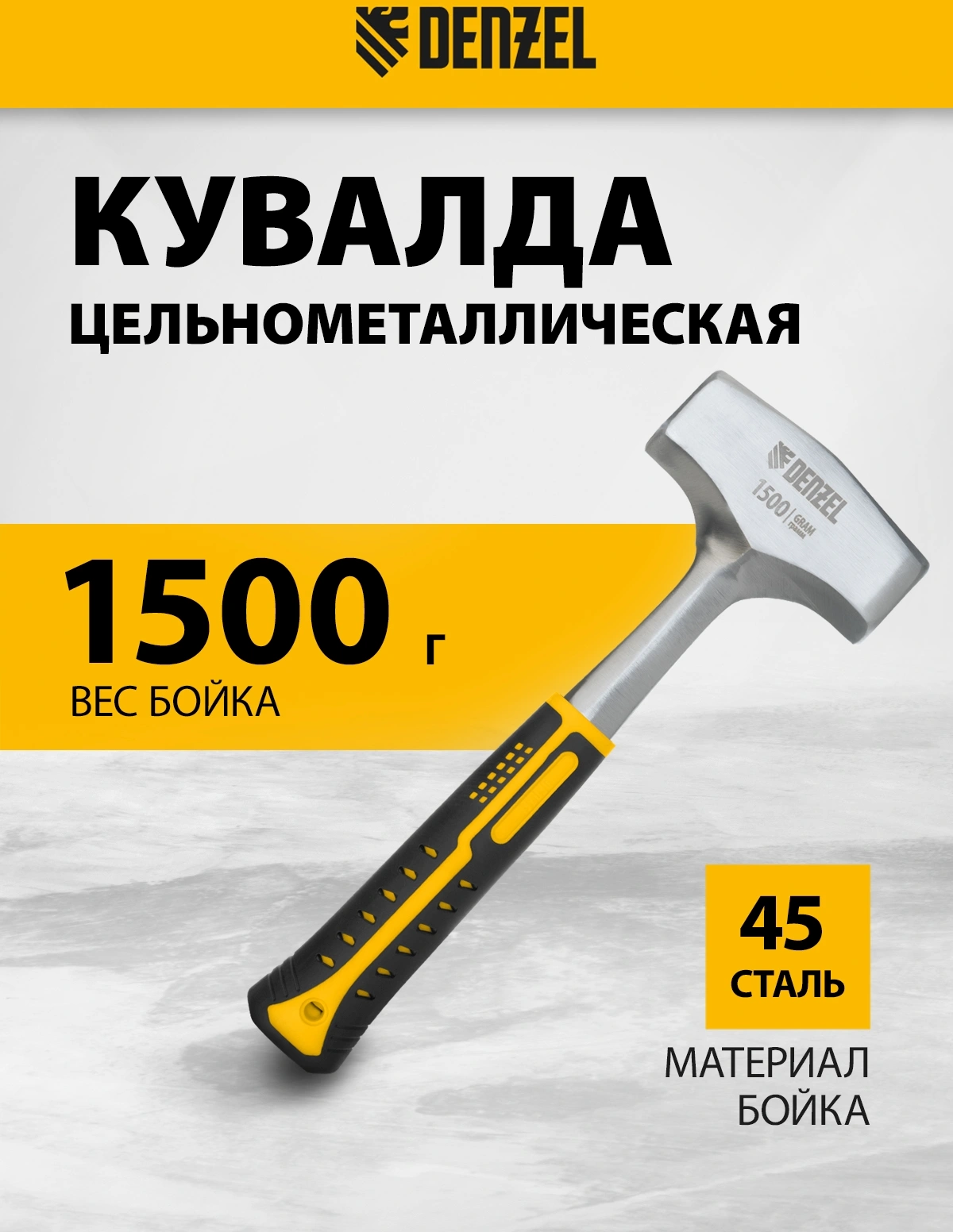 Кувалда 1, 5 кг, цельнометаллическая, двухкомпонентная рукоятка.