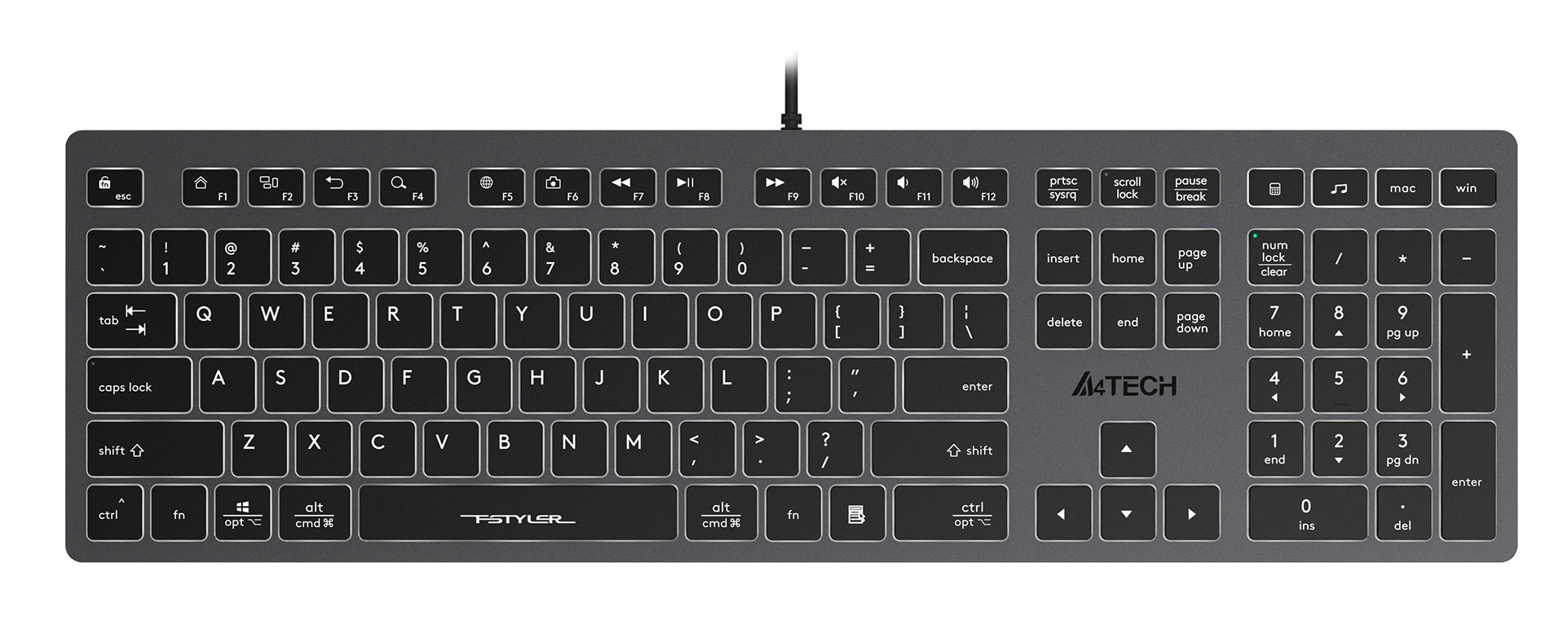 Клавиатура A4Tech Fstyler FX60 серый USB slim LED (FX60 GREY / WHITE)