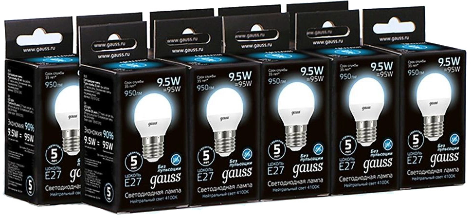 Лампа светодиодная Gauss 105101310 9.5Вт цок.:E14 шар 220B св.свеч.бел.хол. (упак.:10шт)