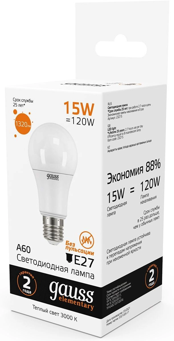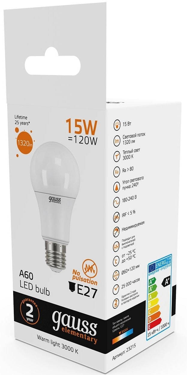 Светодиодная лампа Gauss - безопасный для здоровья и окружающей среды источник света. Она не пульсирует, мгновенно включается, не содержит ртути и имеет больший срок службы, чем лампы накаливания и КЛЛ, экономичнее ламп накаливания до 10 раз.