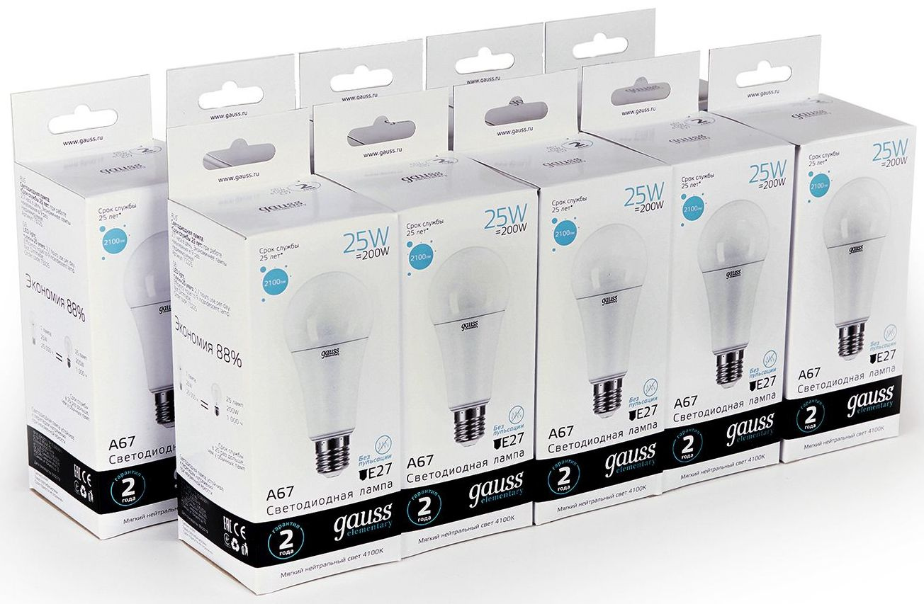 Светодиодная лампа Gauss - безопасный для здоровья и окружающей среды источник света. Она не пульсирует, мгновенно включается, не содержит ртути и имеет больший срок службы, чем лампы накаливания и КЛЛ, экономичнее ламп накаливания до 10 раз.