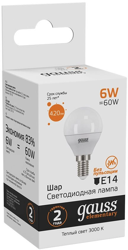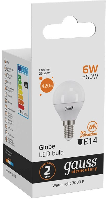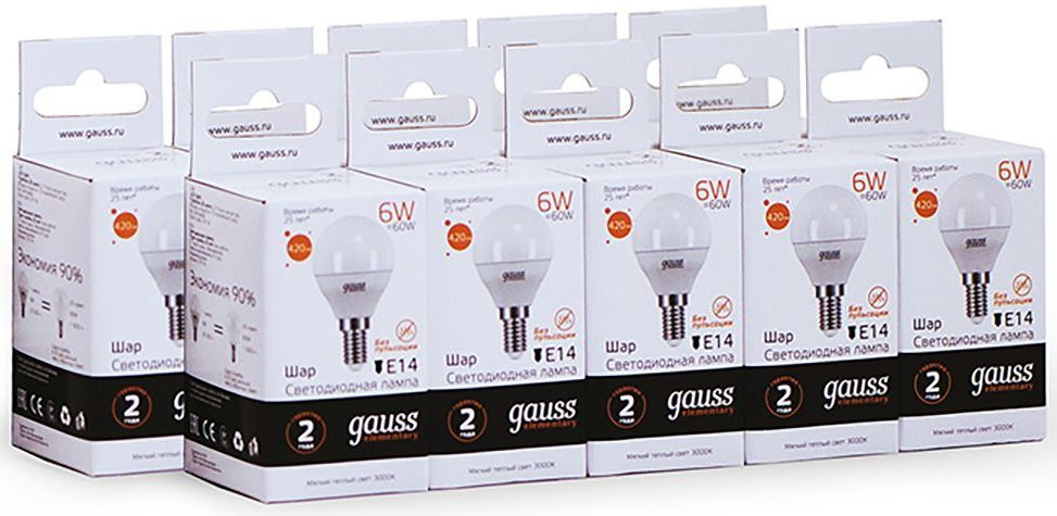 Светодиодная лампа Gauss - безопасный для здоровья и окружающей среды источник света. Она не пульсирует, мгновенно включается, не содержит ртути и имеет больший срок службы, чем лампы накаливания и КЛЛ, экономичнее ламп накаливания до 10 раз.