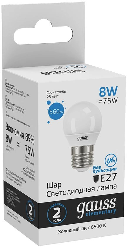 Светодиодная лампа Gauss - безопасный для здоровья и окружающей среды источник света. Она не пульсирует, мгновенно включается, не содержит ртути и имеет больший срок службы, чем лампы накаливания и КЛЛ, экономичнее ламп накаливания до 10 раз.