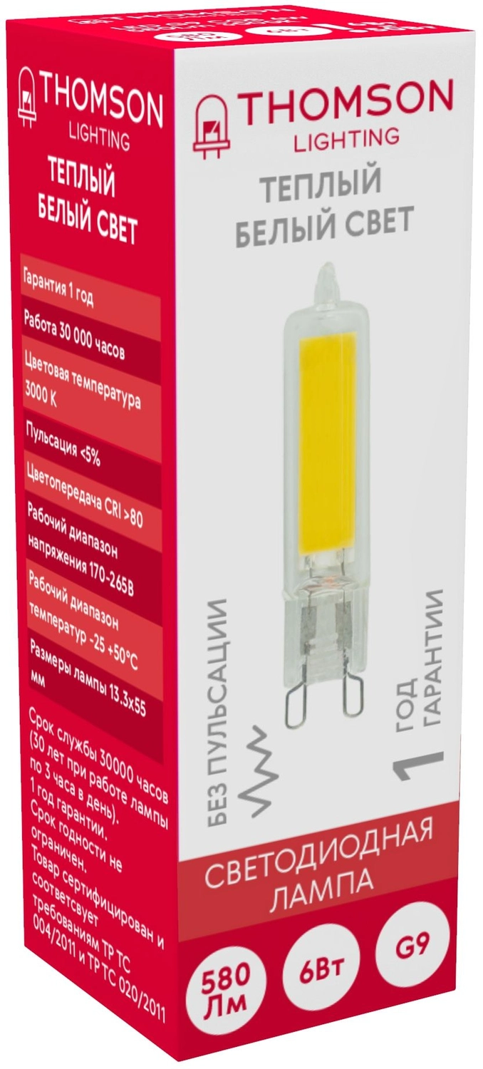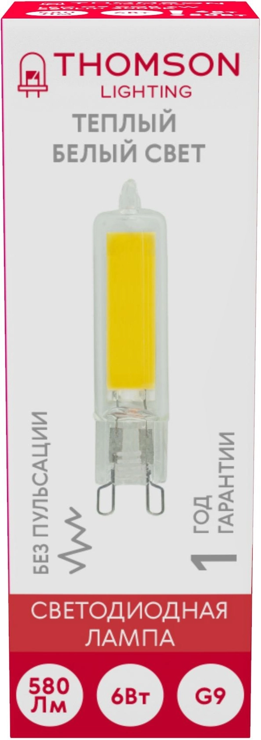 Лампа светодиодная Thomson TH-B4238 6Вт цок.:G9 капсул. 220B св.свеч.бел.теп. (упак.:1шт)