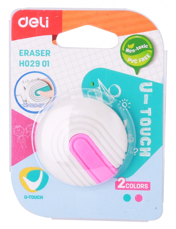 Ластик Deli EH02901 U-touch круглый 45x10мм ассорти с держателем блистер