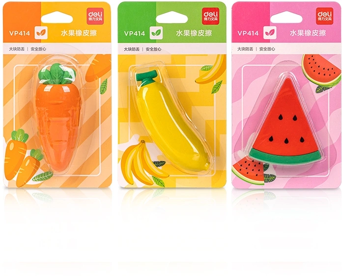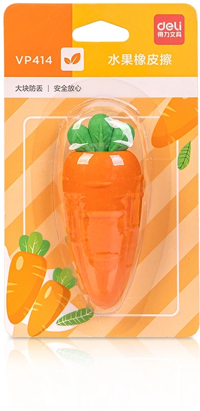 Ластик Deli в форме моркови, ТПР, блистер с европодвесом
