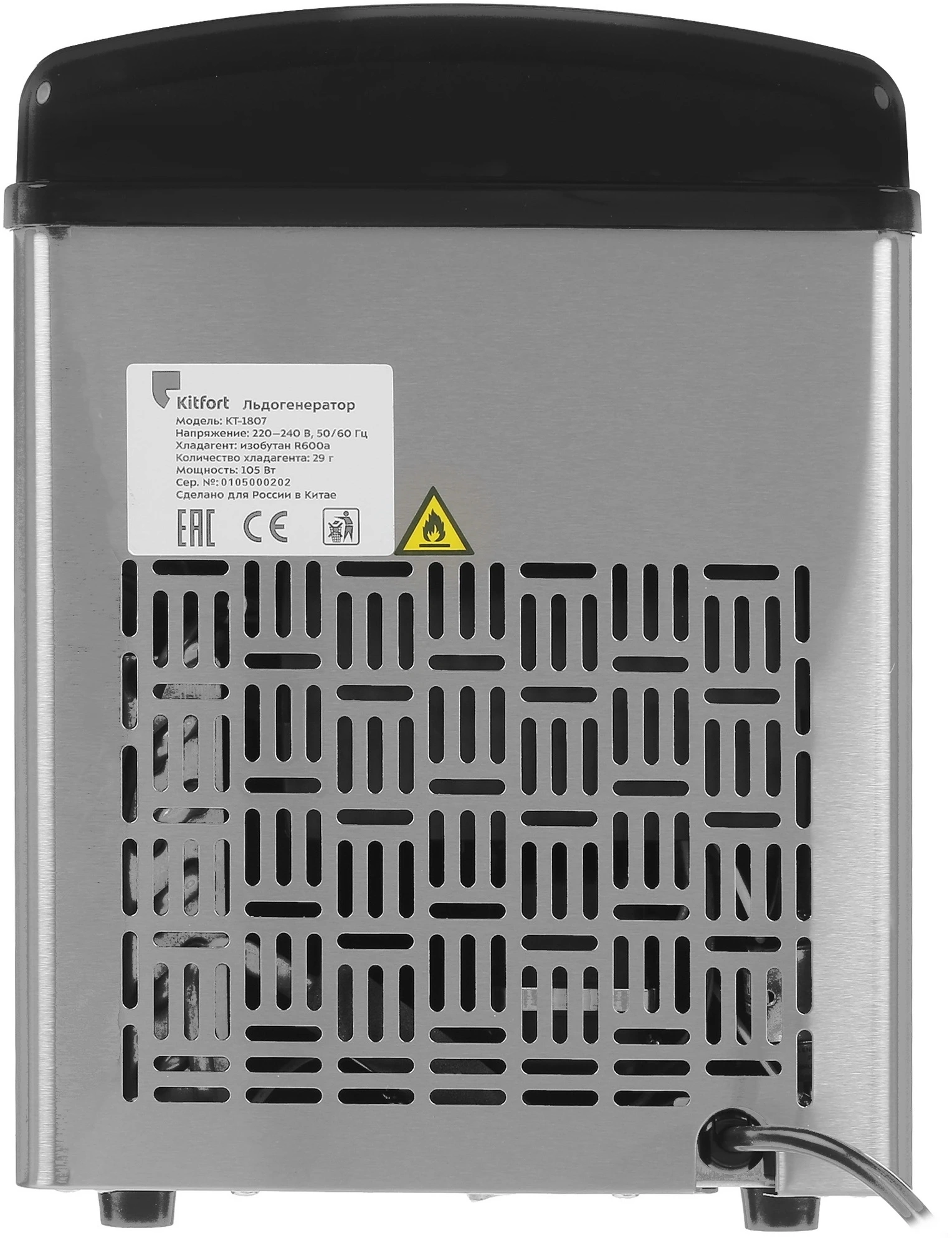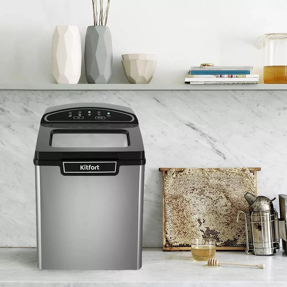 Ледогенератор Kitfort KT-1807 – прибор, который быстро генерирует лёд за 6 -13 мин. Его можно использовать дома для приготовления охлаждённых напитков или для охлаждения жидкостей.