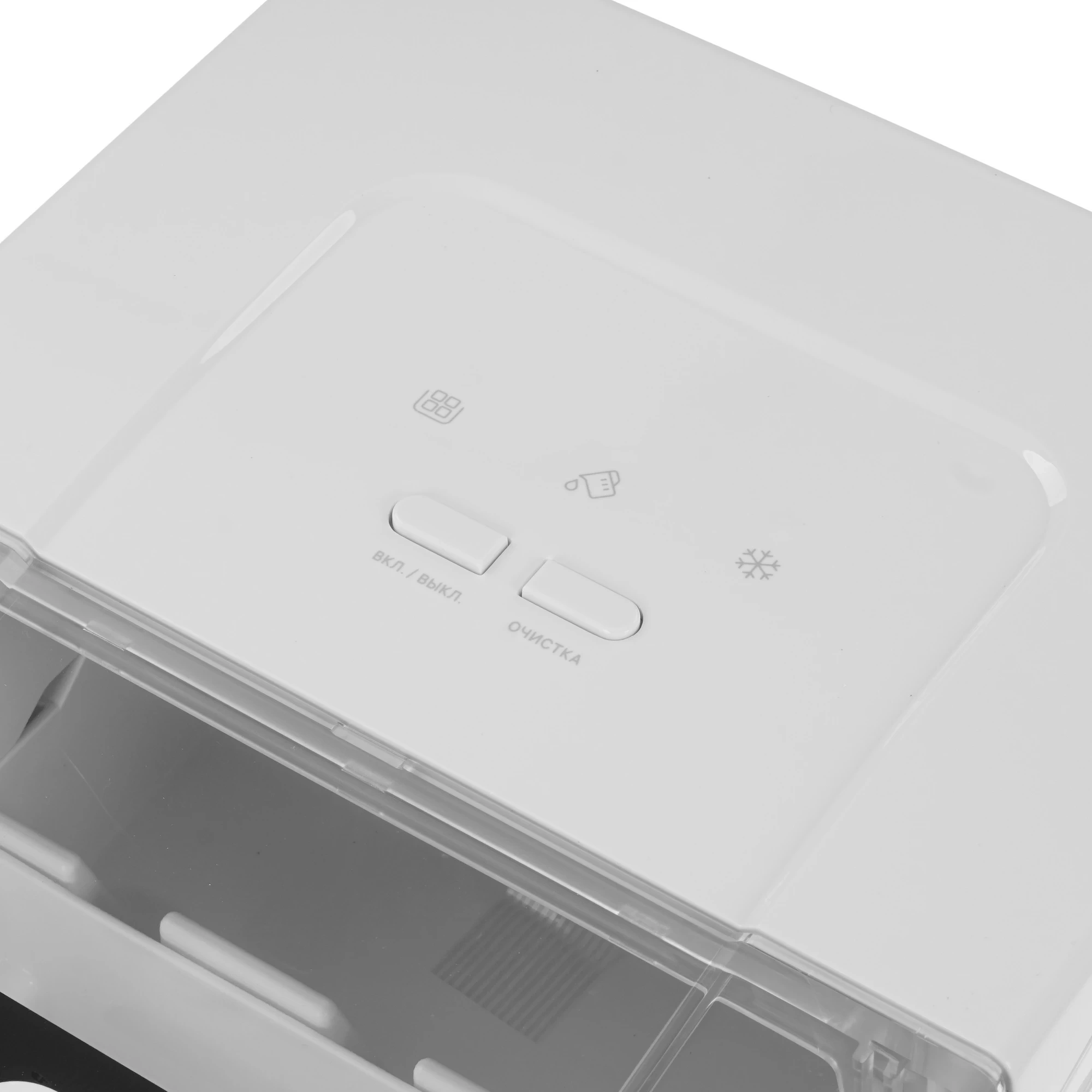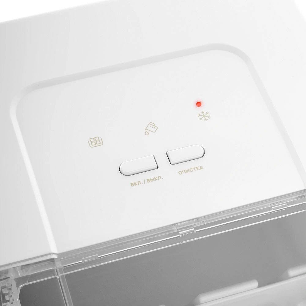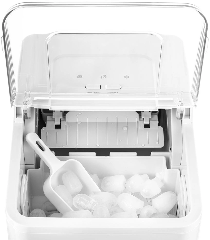 Благодаря инфракрасному датчику заполнения корзины, при её переполнении генерация льда автоматически прекращается. В случае, если лёд достали, льдогенератор запускает цикл заново, пока корзина не будет заполнена. В комплекте идёт совок для черпания льда.