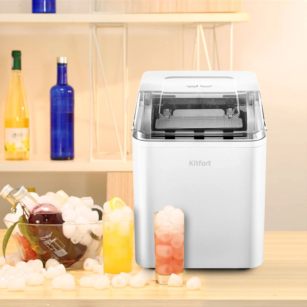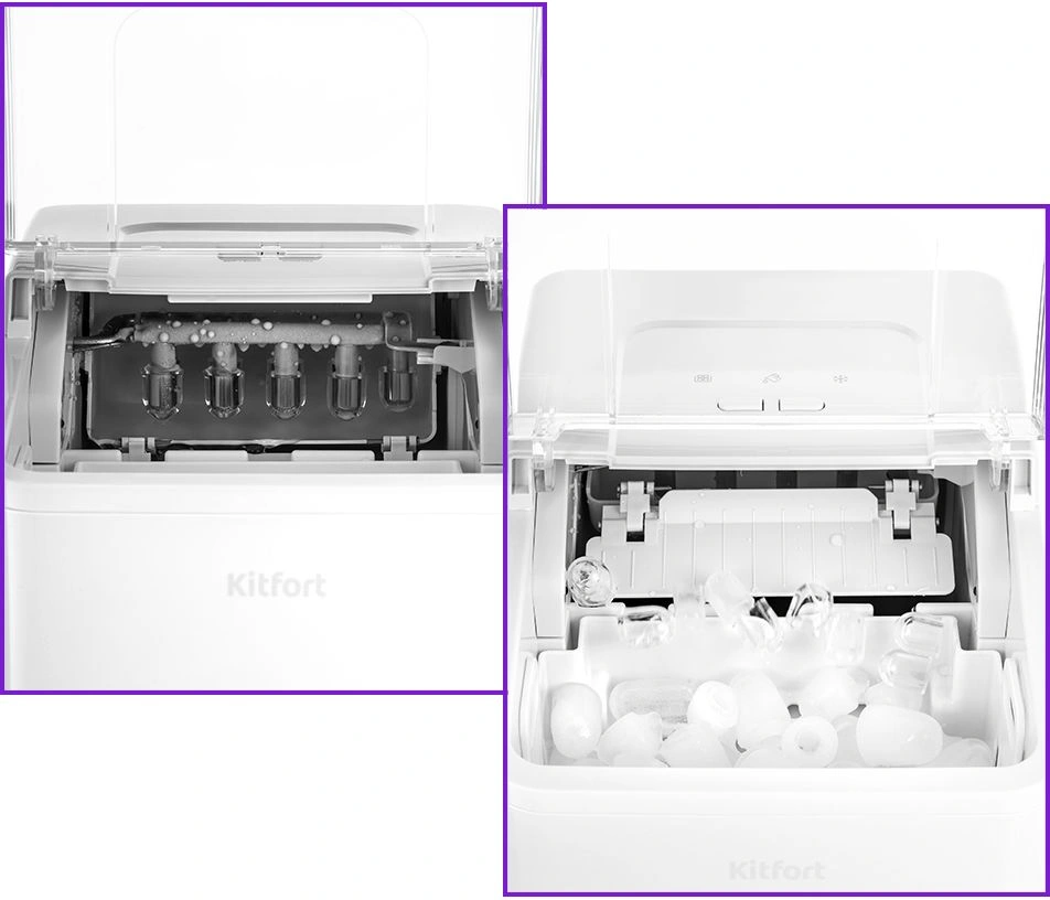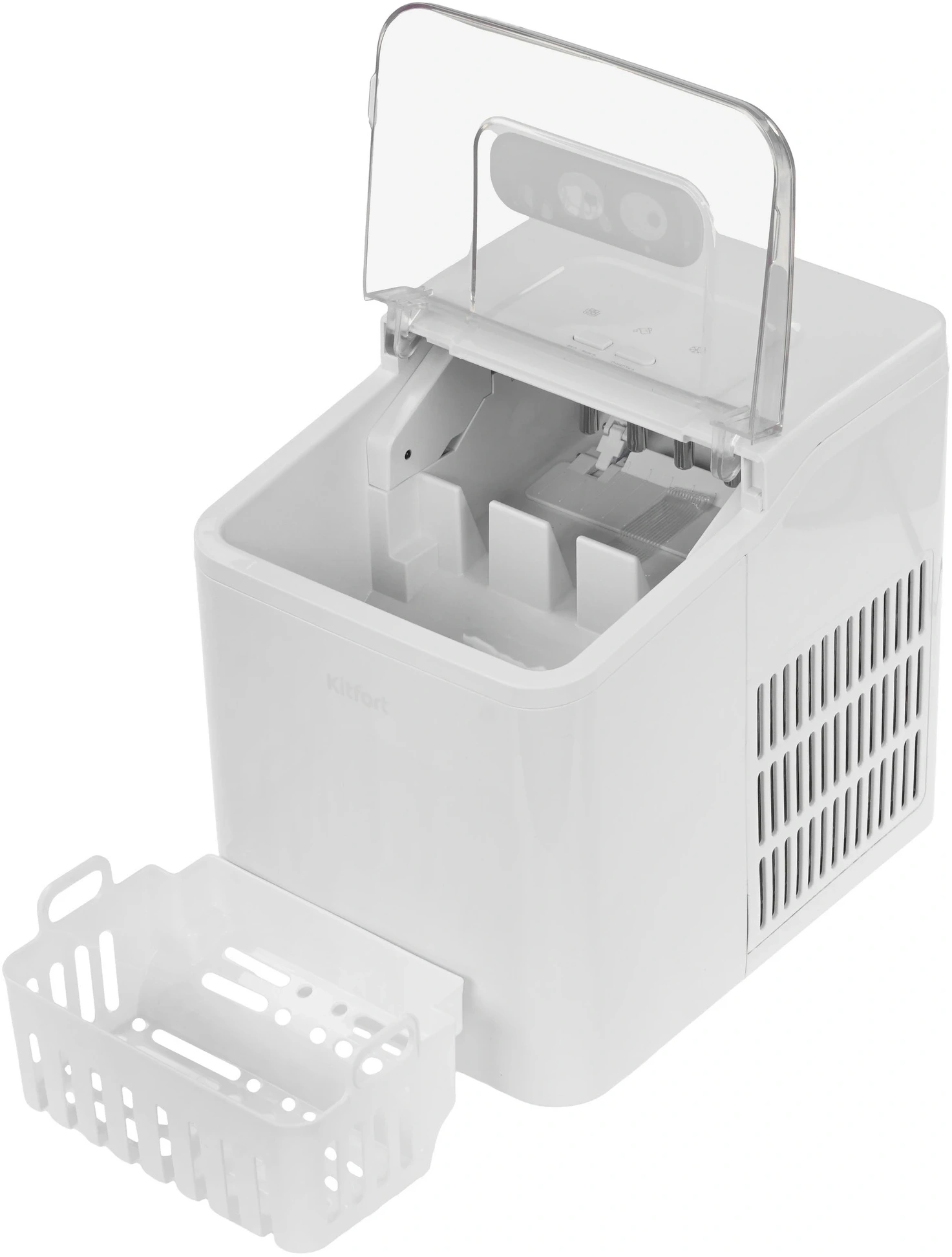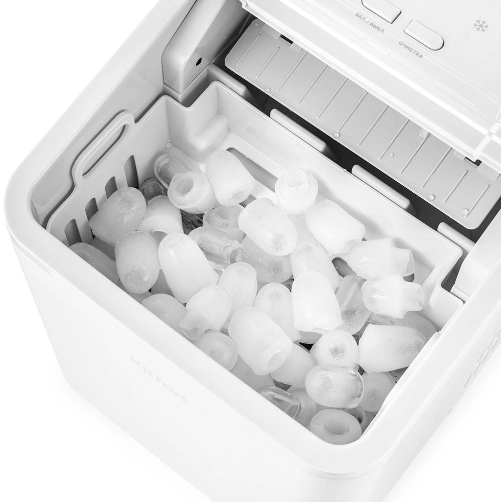 Благодаря инфракрасному датчику заполнения корзины, при её переполнении генерация льда автоматически прекращается. В случае, если лёд достали, льдогенератор запускает цикл заново, пока корзина не будет заполнена. В комплекте идёт совок для черпания льда.