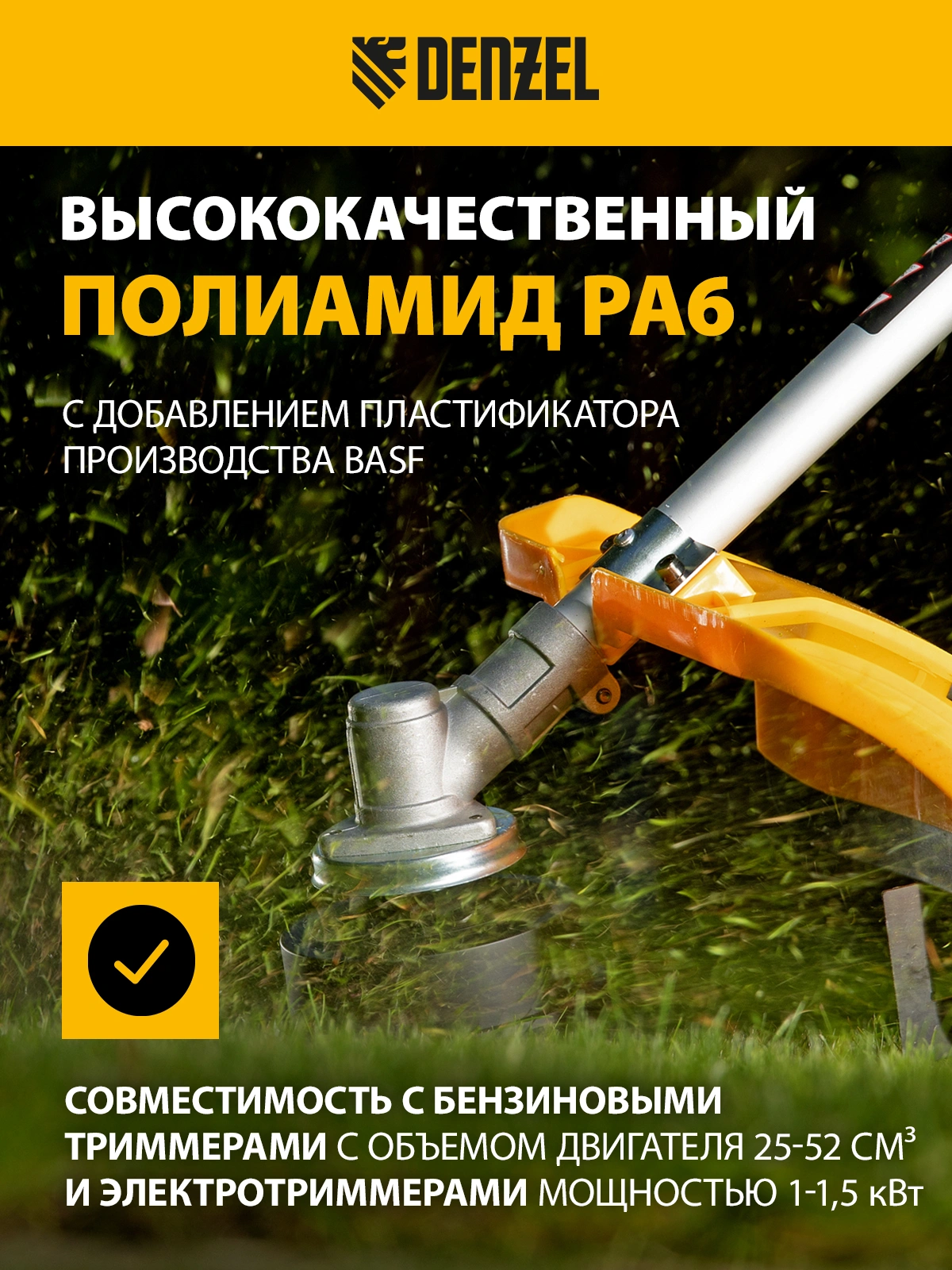 Леска для триммера 2, 4 м Denzel арт 96280 FLEX CORD предназначена для скашивания как мягкой, молодой травы, так и для более густой растительности.