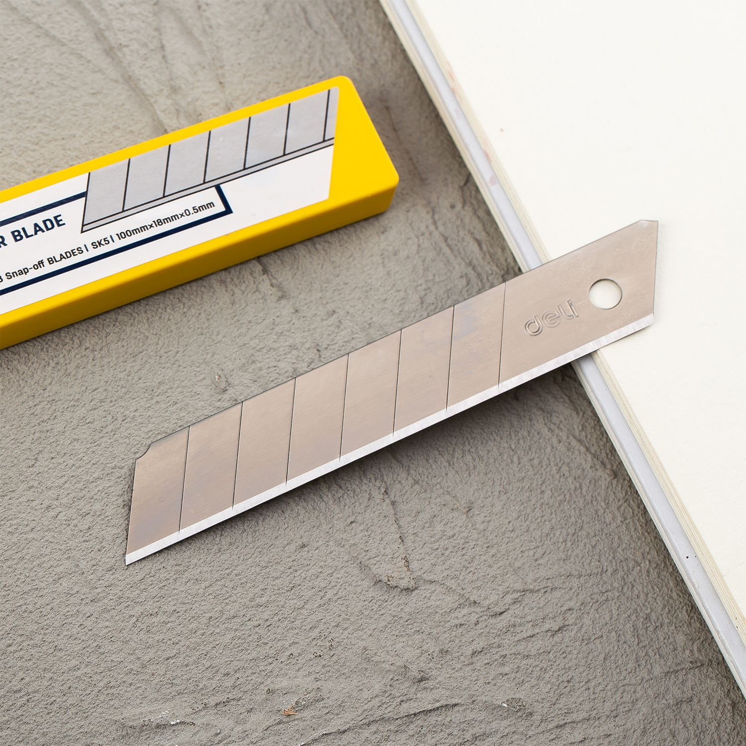 Лезвия для канцелярского ножа Deli E2011 шир.лез.18мм сталь (упак.:10шт) пласт.кор. (продается кратно 20 шт.)