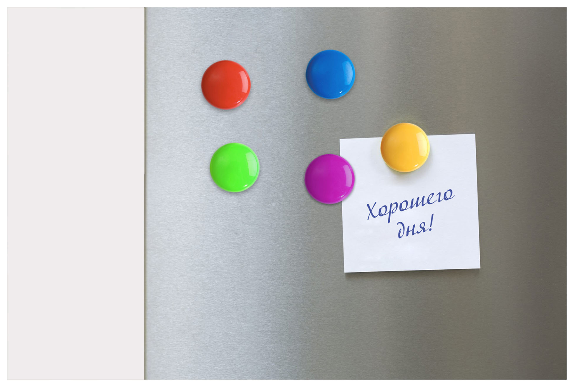 Набор магнитов Buro надежно удерживается на любой железной или стальной поверхности. Прекрасно подойдет для магнитных поверхностей досок, флипчартов. Диаметр магнита составляет 30 мм. Магниты круглой формы выполнены из пластика цвета ассорти. В комплекте 5 штук.