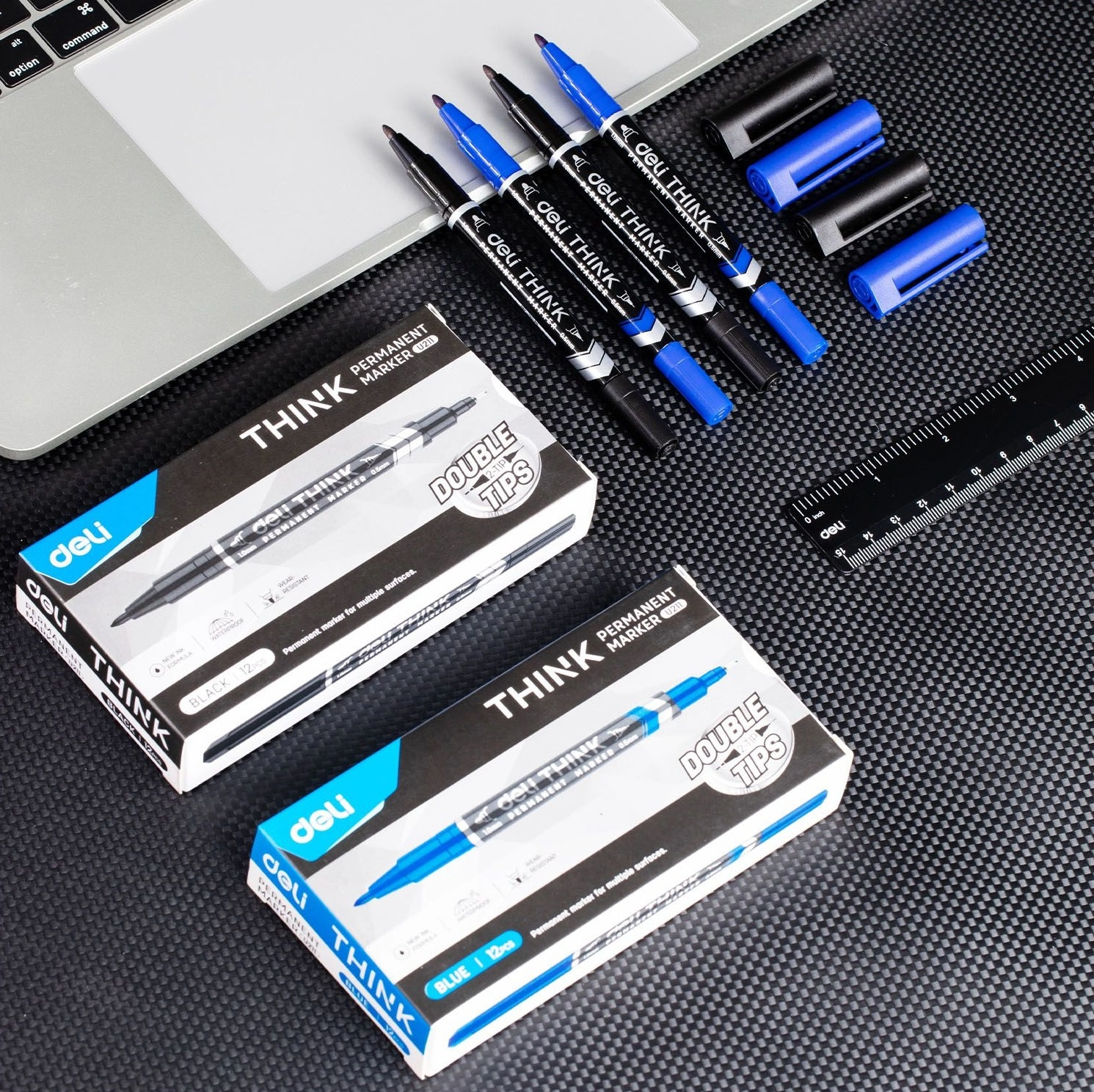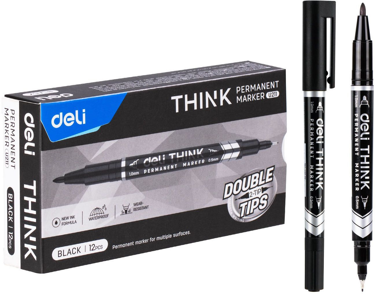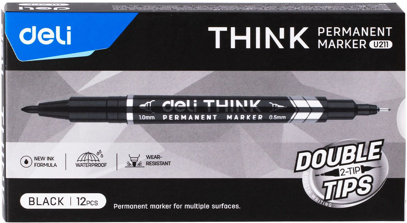 Маркер перманентный Deli EU211-BK Think двойной пиш. наконечник 0.5-1мм черный (продается кратно 12 шт.)