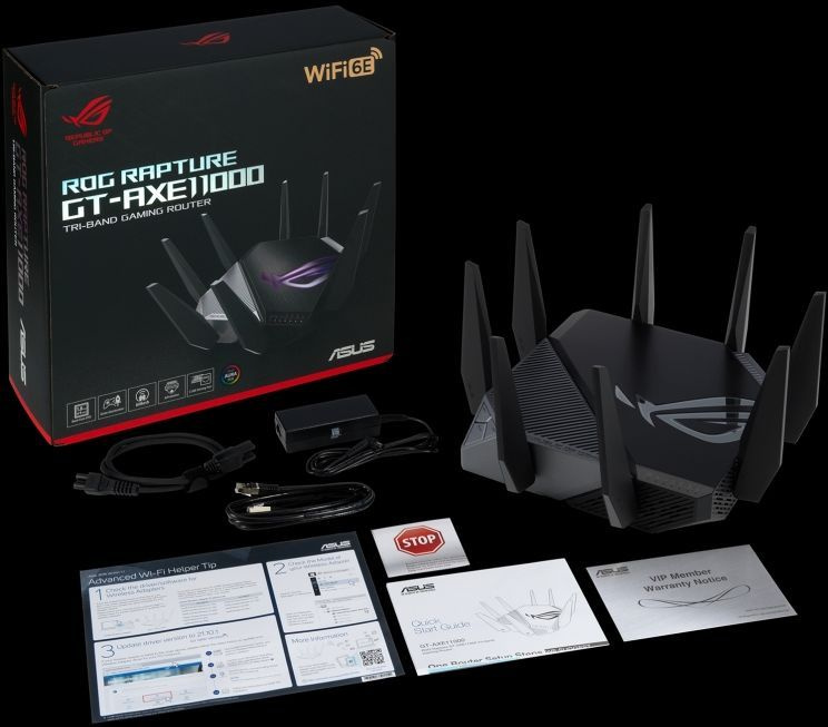 Игровой роутер ROG Rapture, блок питания, сетевой кабель (RJ-45) , краткое руководство.
