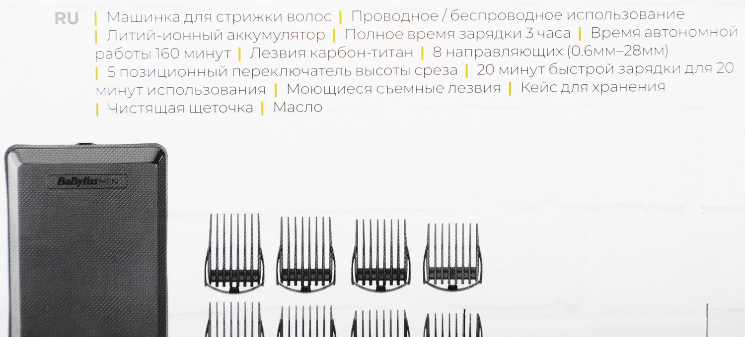Машинка для стрижки Babyliss E986E черный (насадок в компл:8шт)