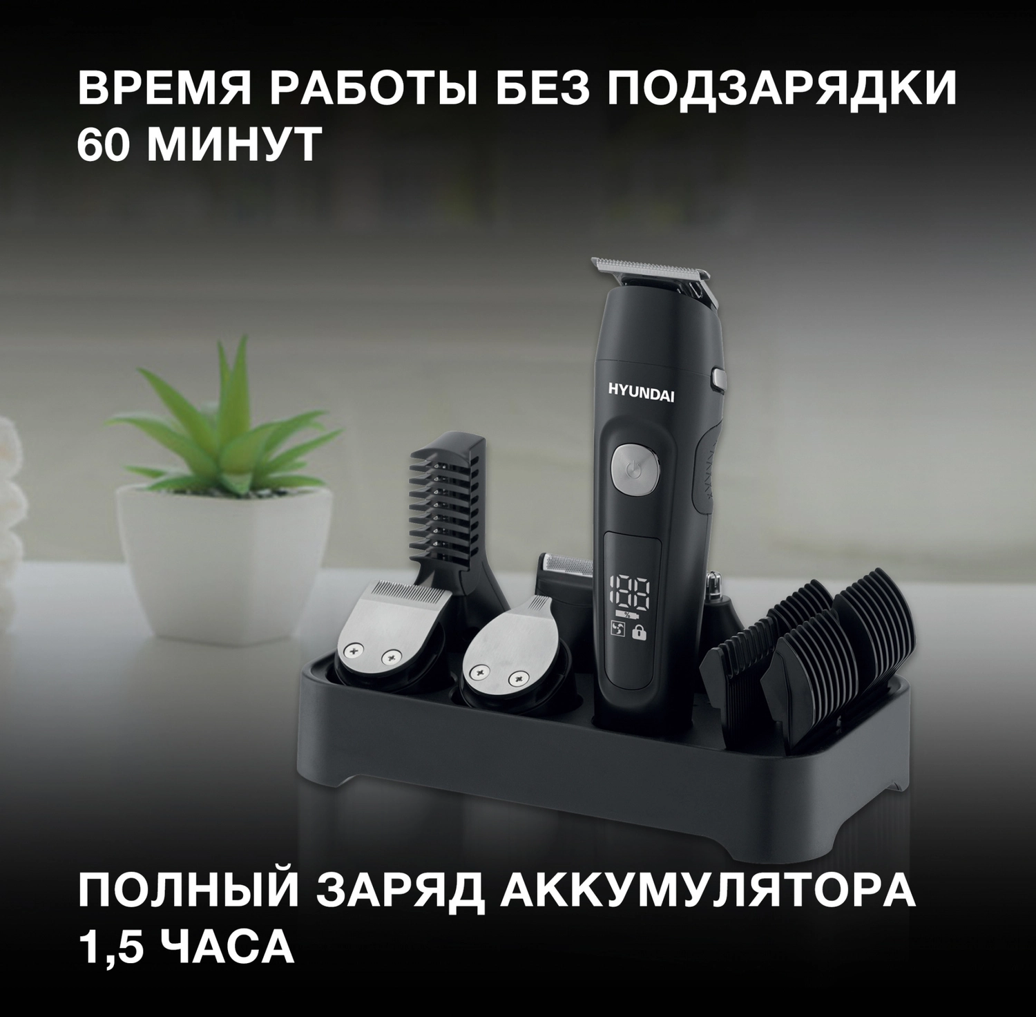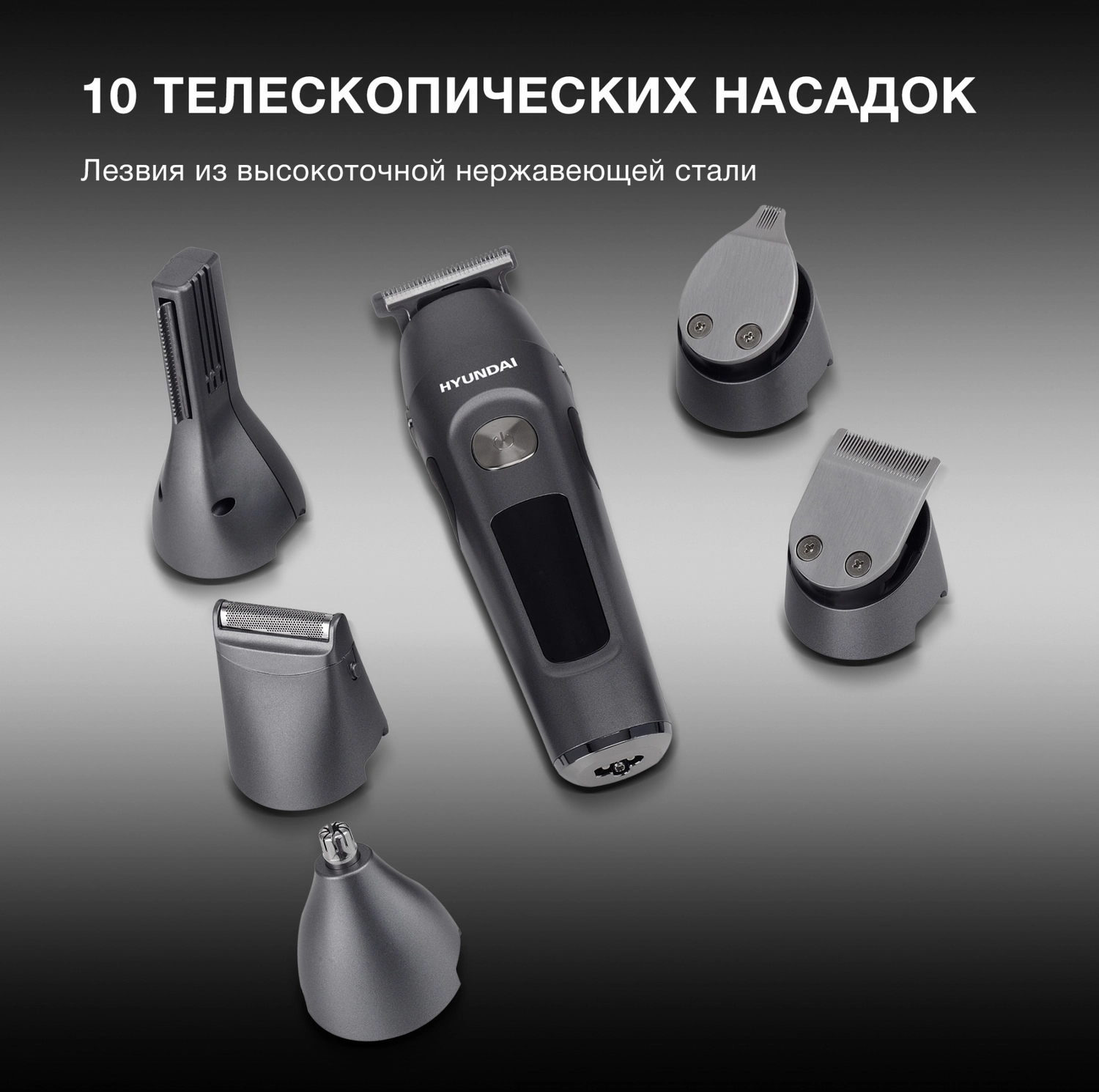 Машинка для стрижки Hyundai H-HC7120 черный/ серебристый 5Вт (насадок в компл:10шт)