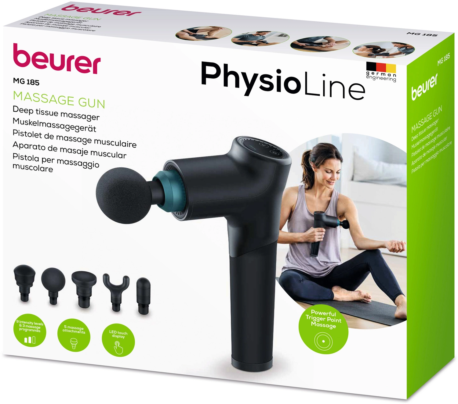 Интенсивный и расслабляющий массаж триггерных точек для снятия напряжения. Стильный массажер с пятью насадками можно применять для всего тела. Благодаря мощному литий-ионному аккумулятору массажер работает до 5, 5 часов без подзарядки. Сенсорный светодиодный дисплей для удобного управления.