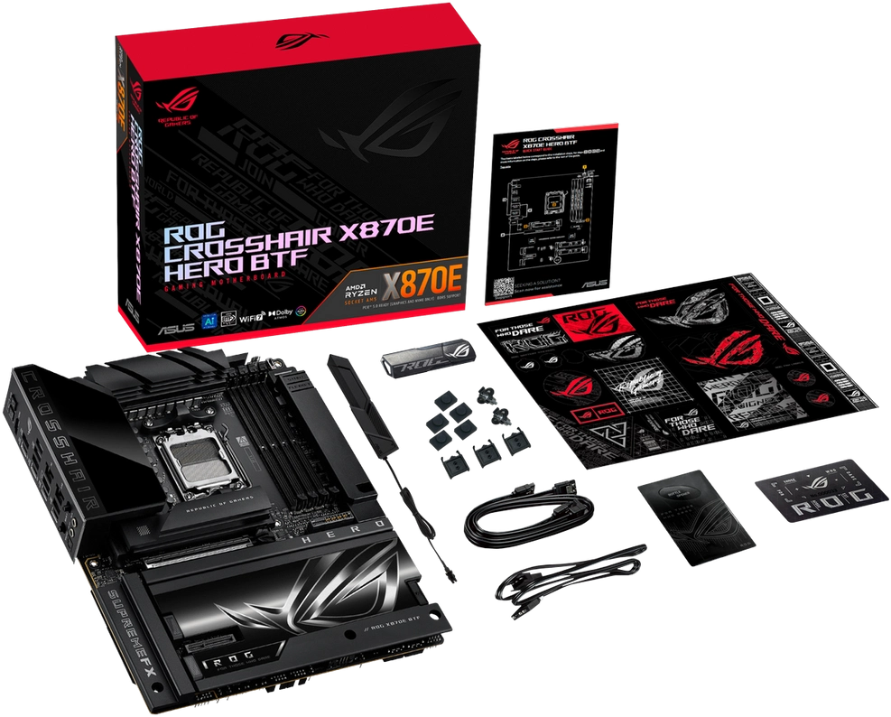 Материнская плата, 4 x кабель SATA, Q-коннектор, USB Flash с ПО, антенна Wi-Fi, документация, комплект наклеек, комплект термопрокладок, крепеж для разъема M.2, открывалка для бутылок, стяжки для кабелей, удлинитель для RGB