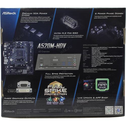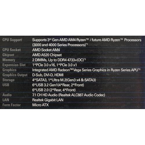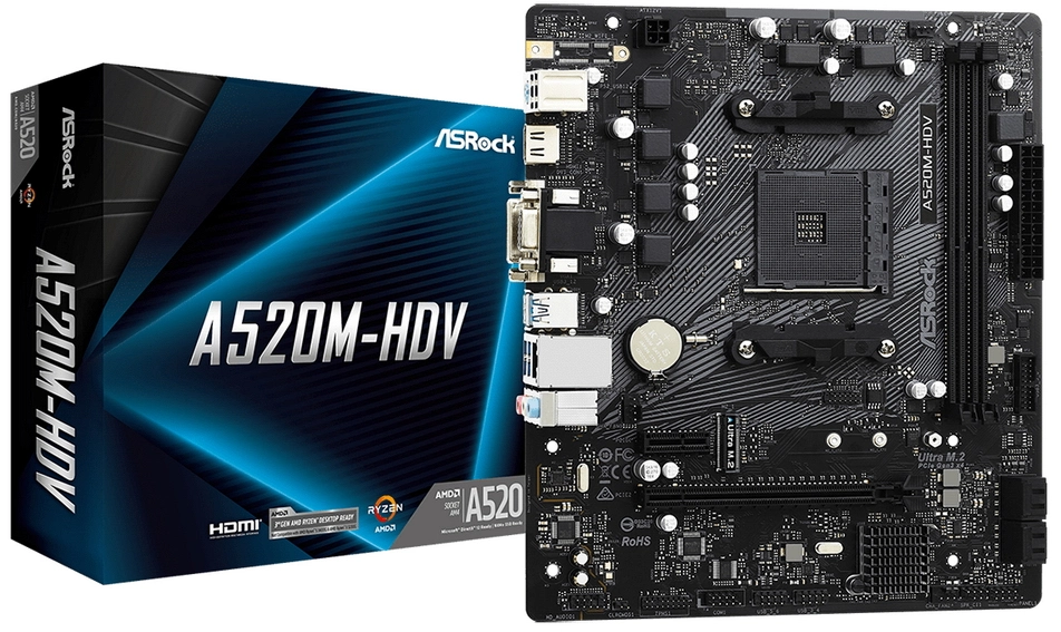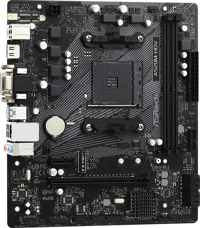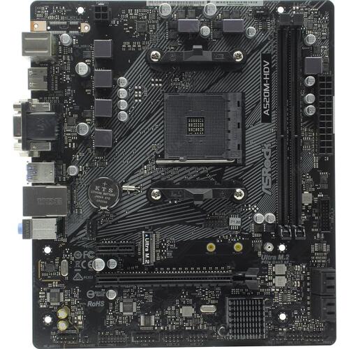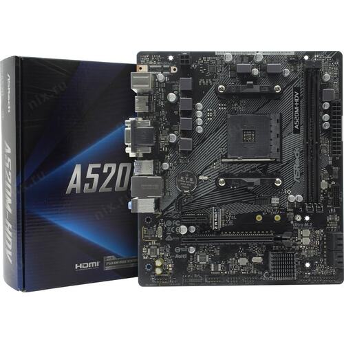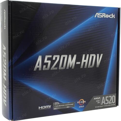 Материнская плата Asrock A520M-HDV Soc-AM4 AMD A520 2xDDR4 mATX AC`97 8ch(7.1) GbLAN RAID+VGA+DVI+HDMI