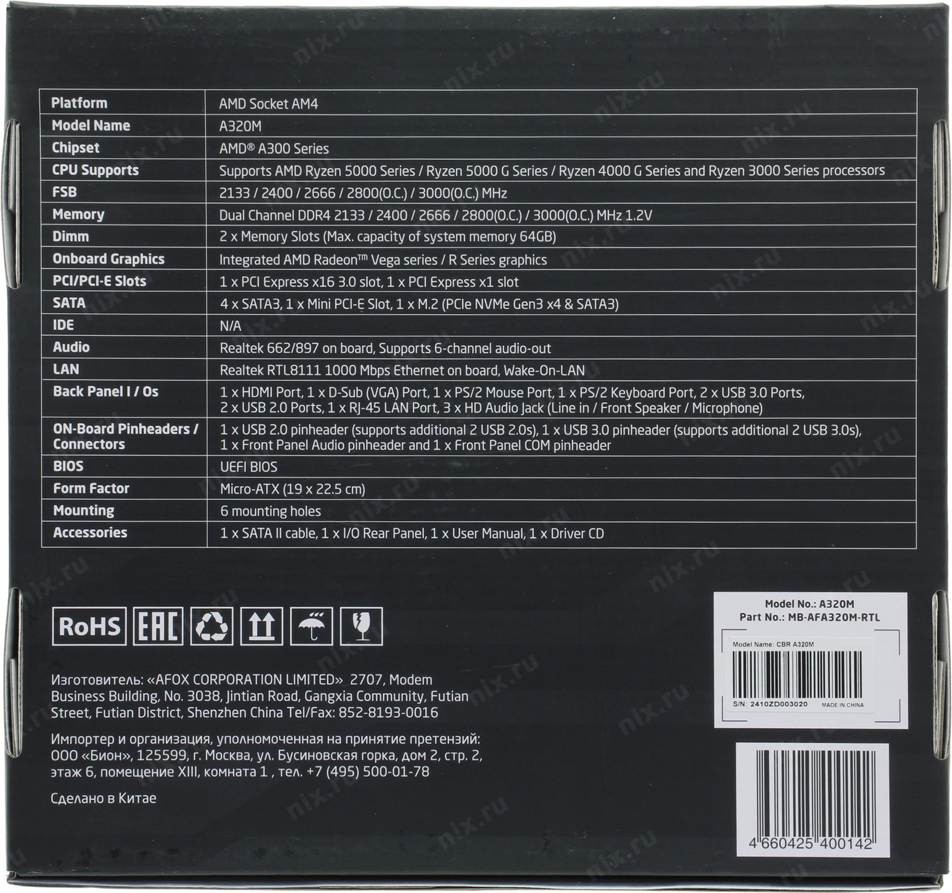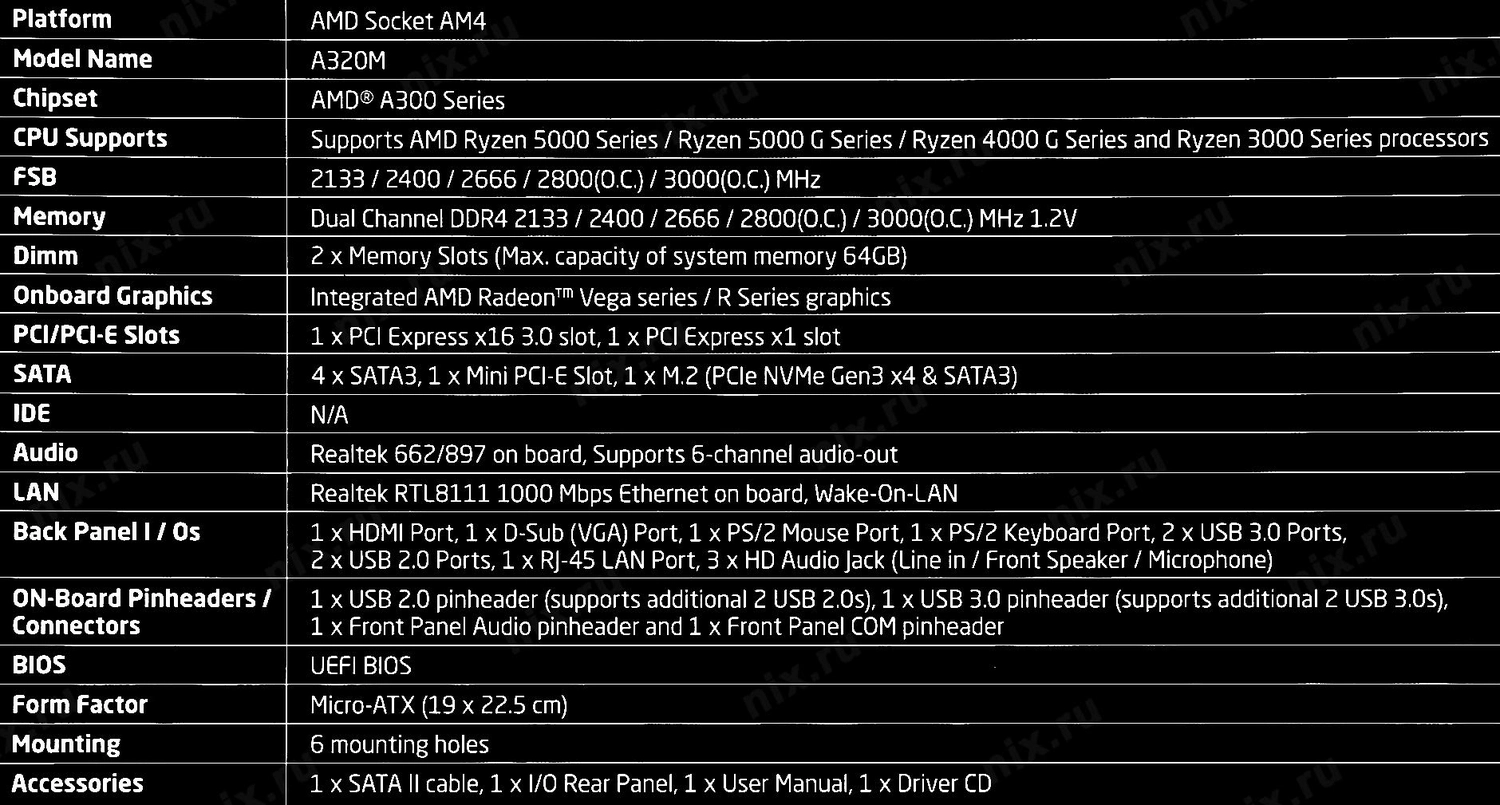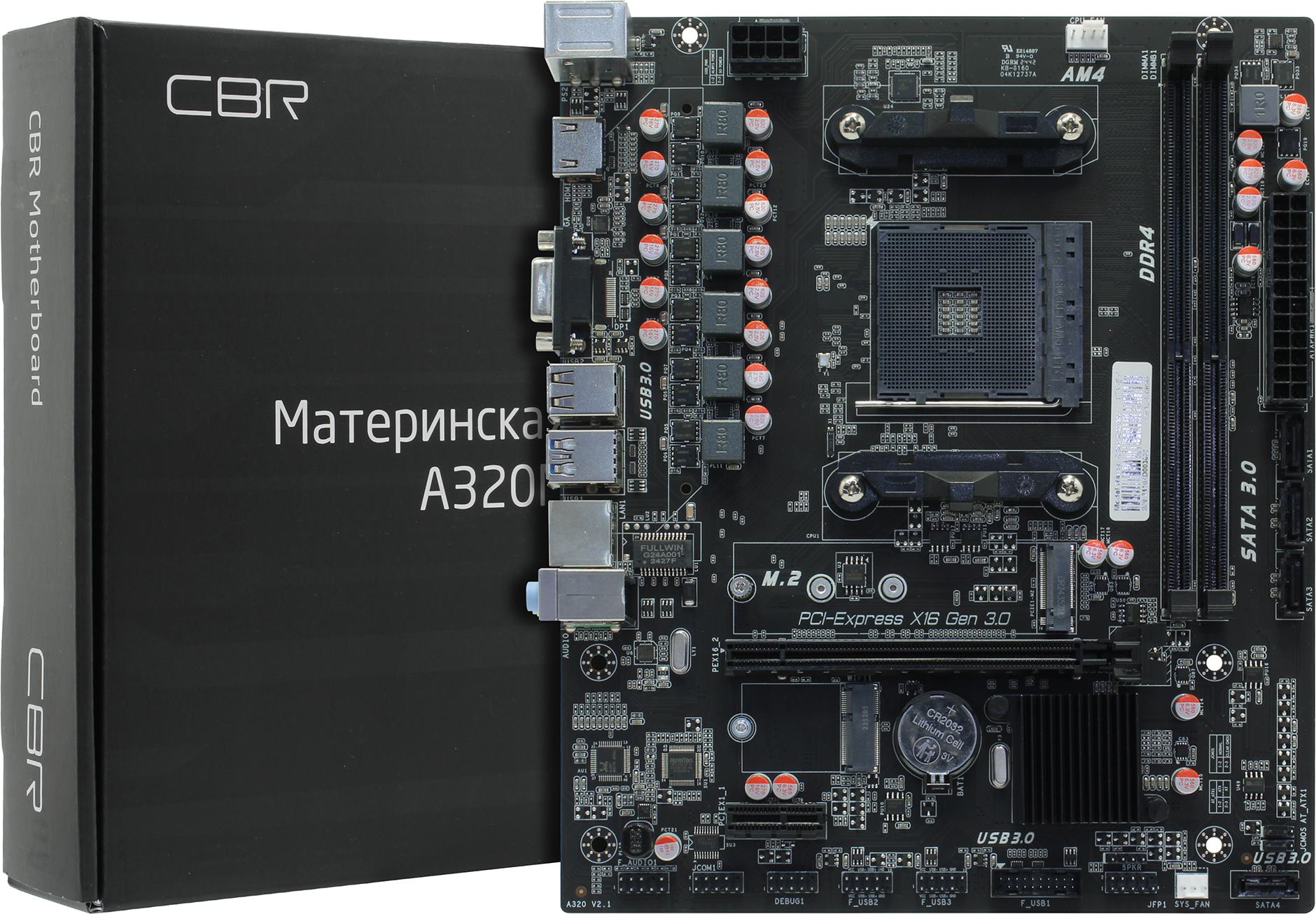 Материнская плата CBR A320M ( Chipset A320, Socket AM4, 2*DDR4, mATX, VGA+HDMI, 1*PCIEx16, 1*PCIEx1,1*M.2(PCIe NVMe Gen3 x4 & SATA3), 4*SATA3, 2*USB2.0 + 2*USB3.0, LAN 1Gb) [MB-AFA320M-RTL]