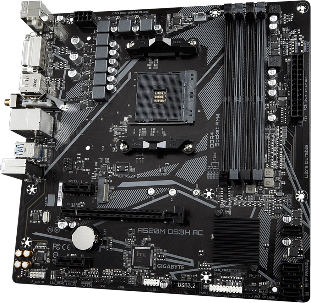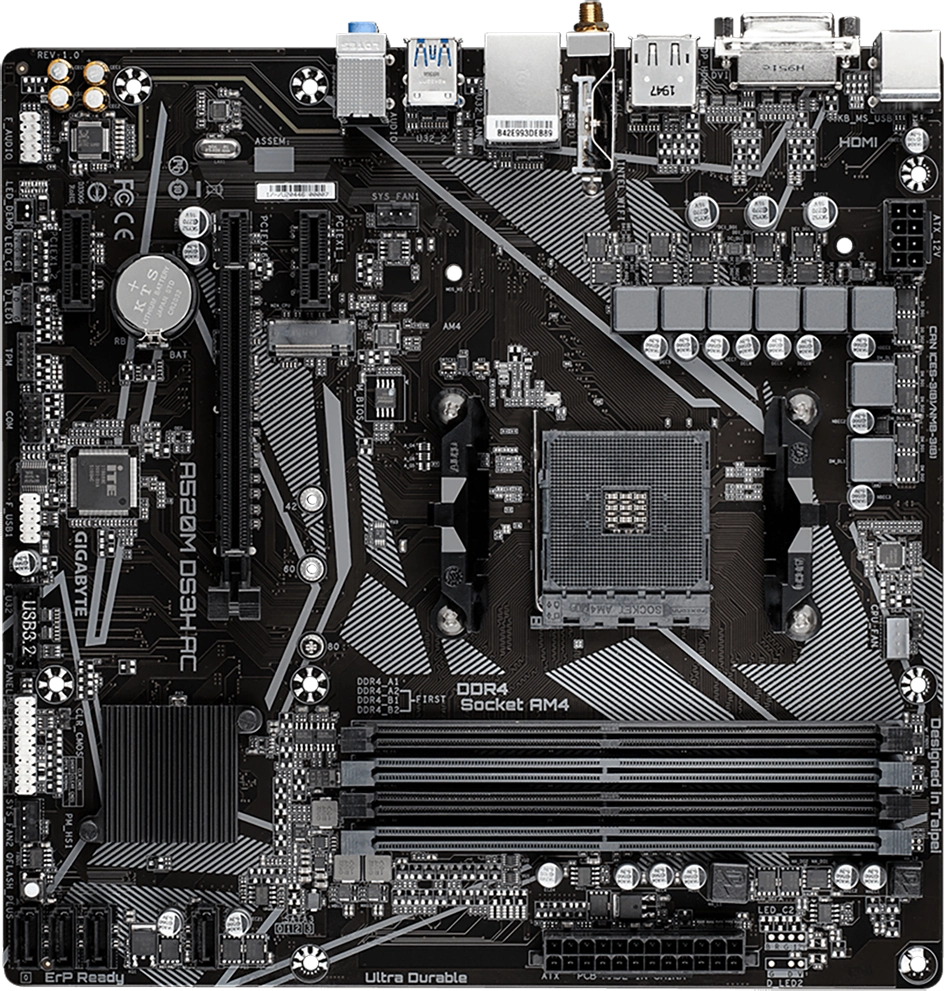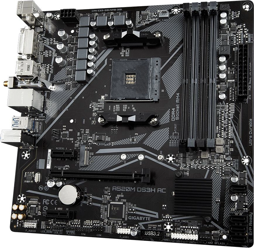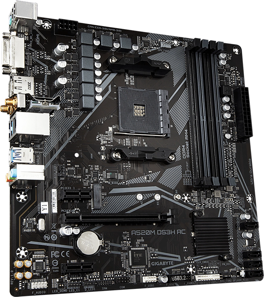 Материнская плата Gigabyte A520M DS3H AC Soc-AM4 AMD A520 4xDDR4 mATX AC`97 8ch(7.1) GbLAN RAID+HDMI+DP