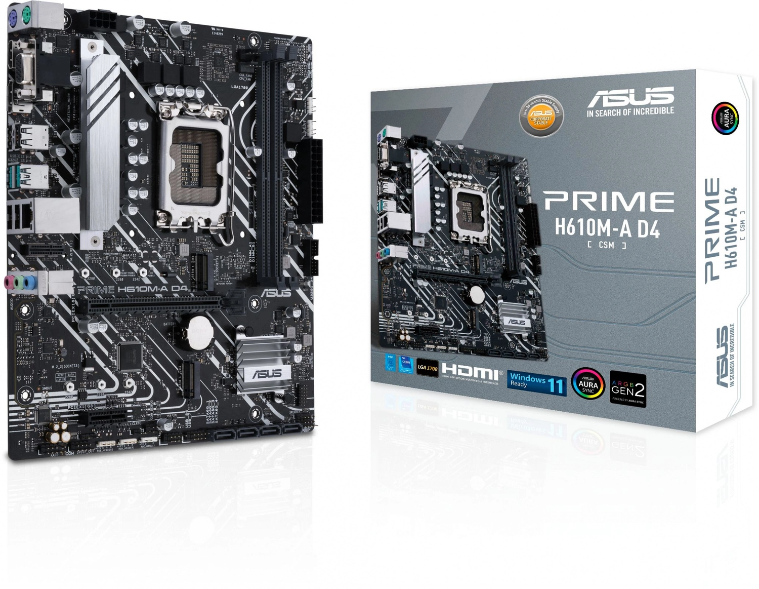 Материнская плата M/ B ASUS PRIME H610M-A D4-CSM (RTL) LGA1700 < H610> PCI-E Dsub+HDMI+DP GbLAN SATA MicroATX 2DDR4