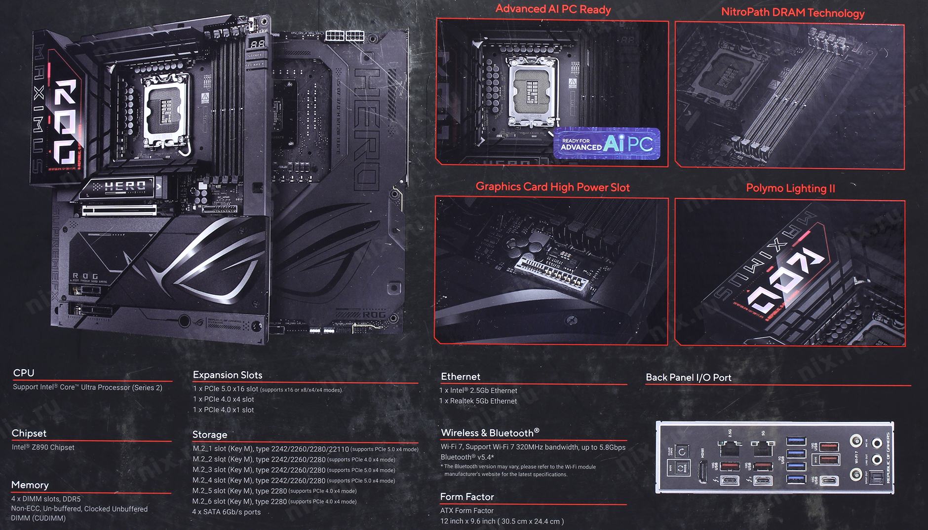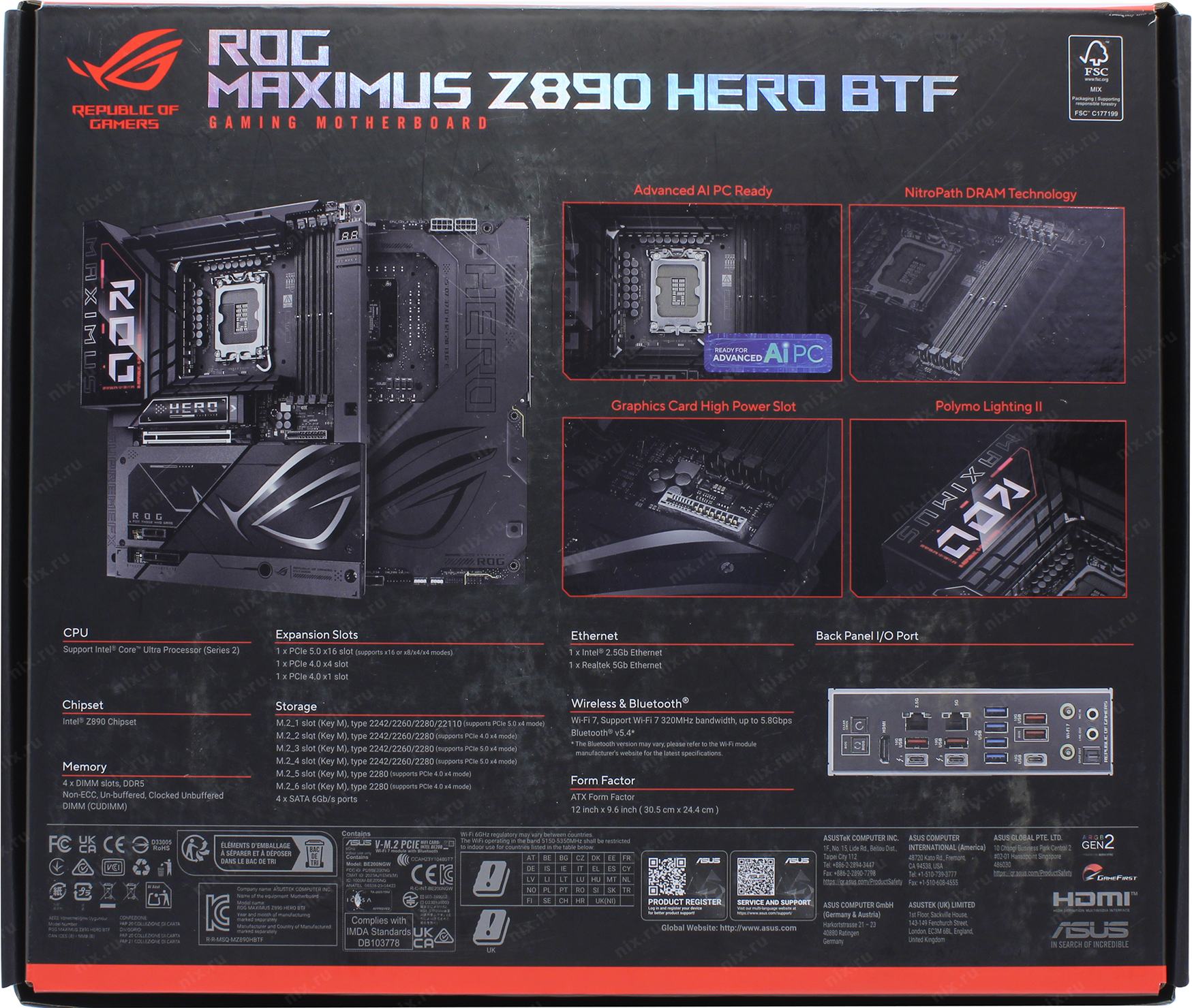 Материнская плата M/ B ASUS ROG MAXIMUS Z890 HERO BTF (RTL) LGA1851 < Z890> PCI-E HDMI 5GbLAN+2.5GbLAN+WiFi+BT SATA ATX 4DDR5