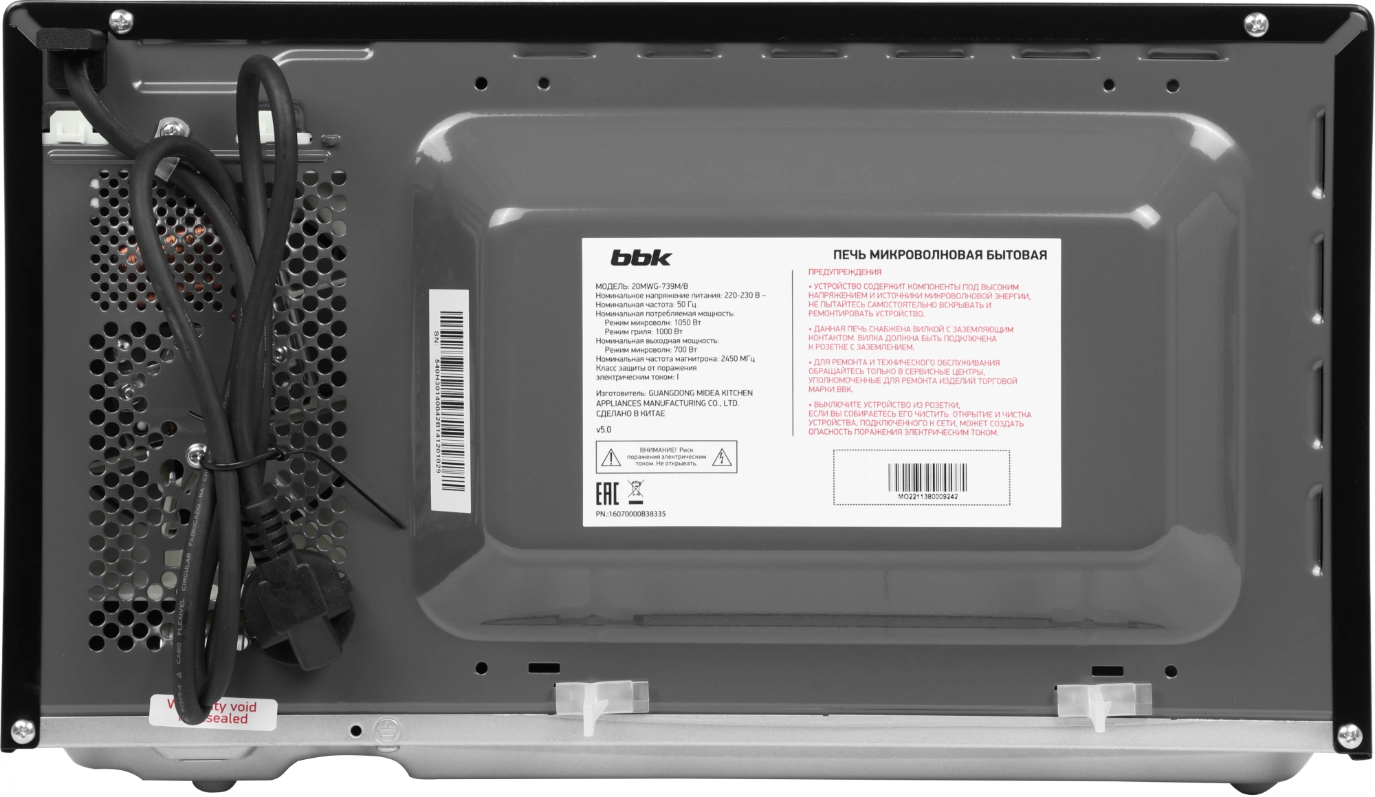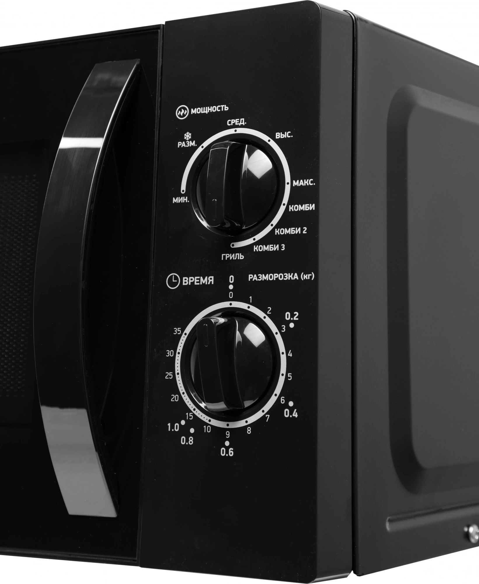 Таймер 35 мин., 5 ступеней мощности, заземляющий контакт на вилке, программа разморозки по весу.