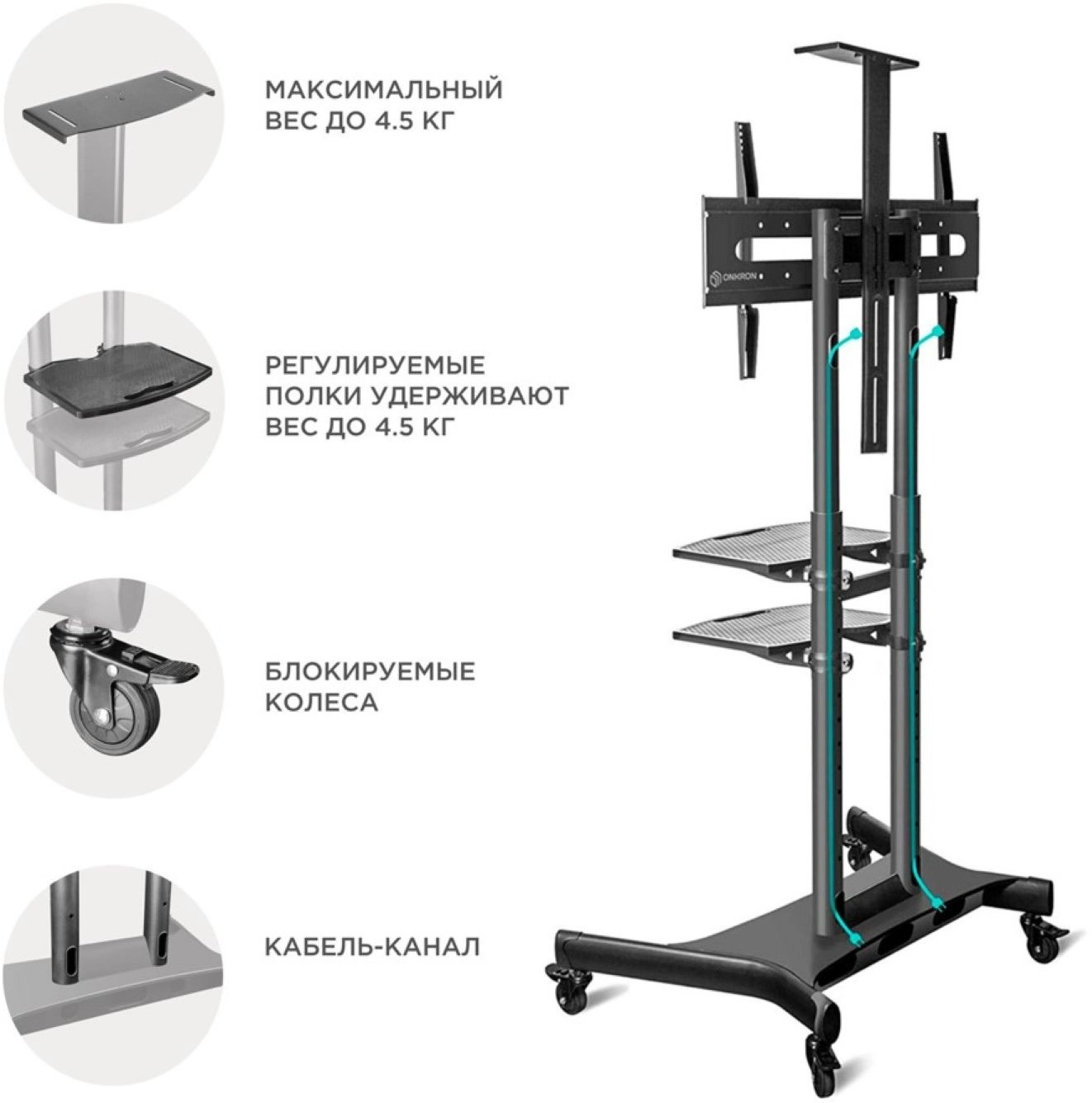 Мобильные стойки ONKRON ONKRON TS1881 черный 2 полки для AV в комплкте Для телевизоров диагональю 50-86" Максимальная нагрузка: 90, 9 кг VESA: 200x200, 200x300, 200x400, 300x100, 300x200, 300x300, 300x400, 400x200, 400x300, [4603728440125]