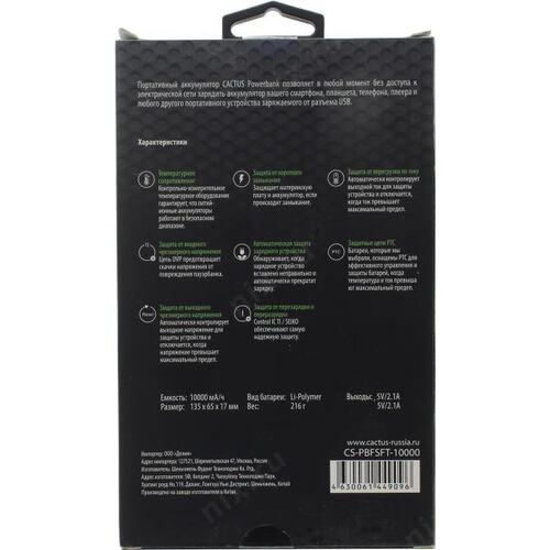 Мобильный аккумулятор Cactus CS-PBFSFT-10000 10000mAh 10.5W 2.1A 2xUSB-A черный