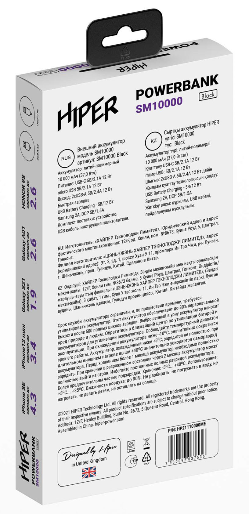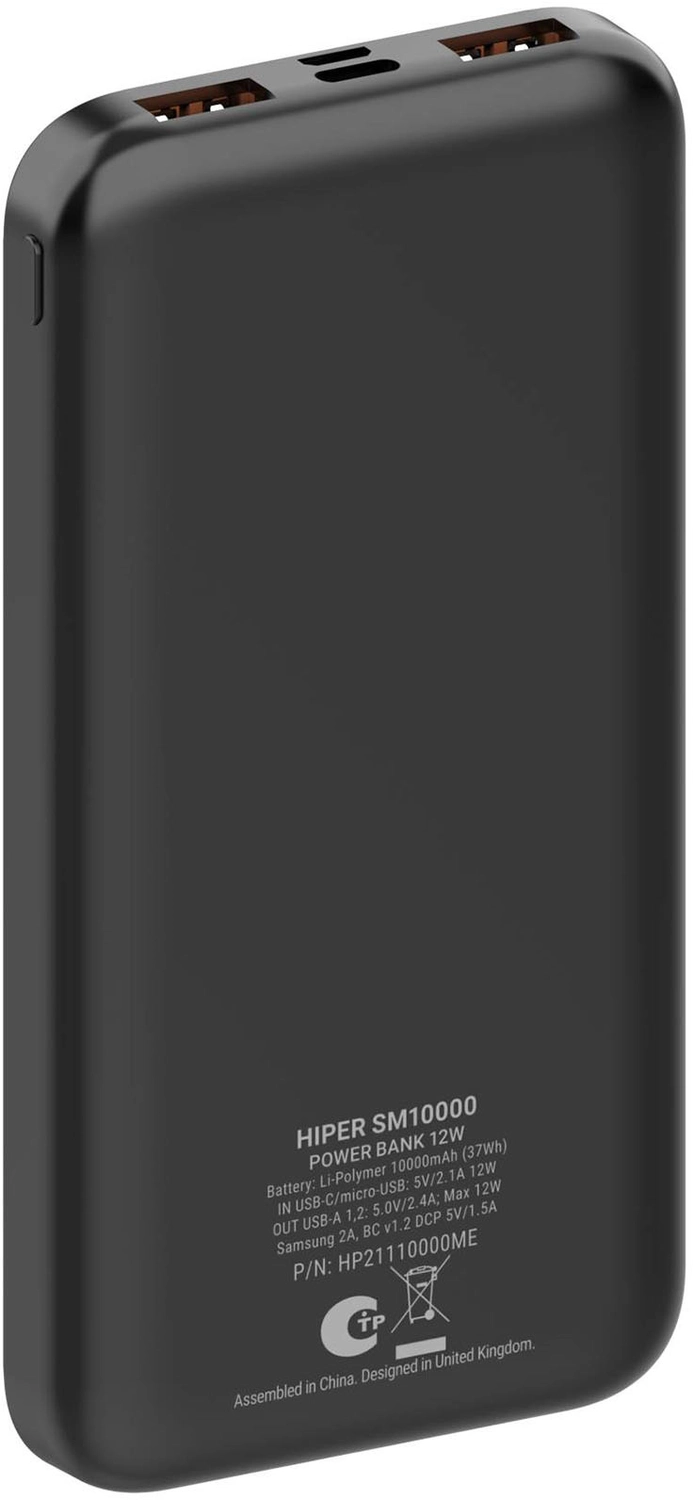 Мобильный аккумулятор Hiper SM10000 10000mAh 12W 2.4A USB-A черный (SM10000 BLACK) | НИКС Екатеринбург