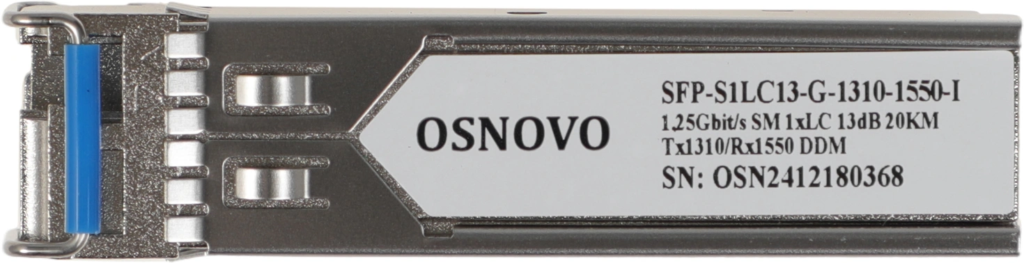 Одно волокно Single Mode. Скорость: до 1, 25 Гбит/ c. Тип разъема: LC. Оптический бюджет: 13дБ. Расстояние передачи - до 20км.