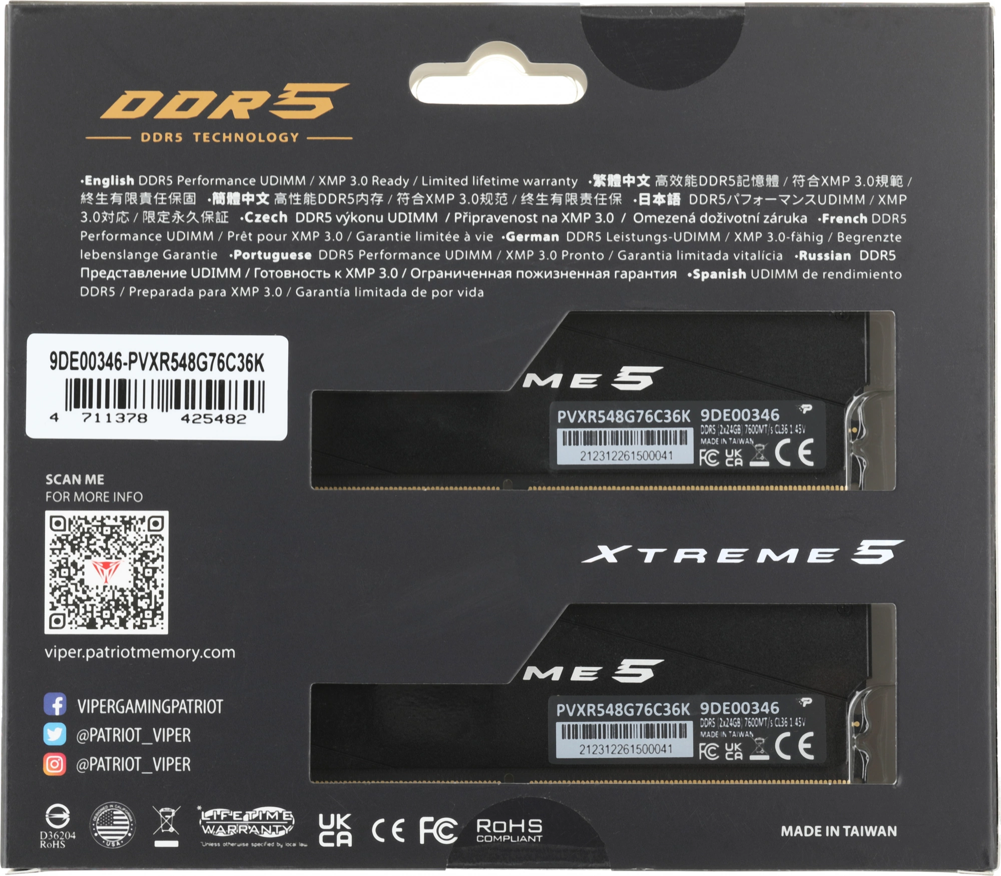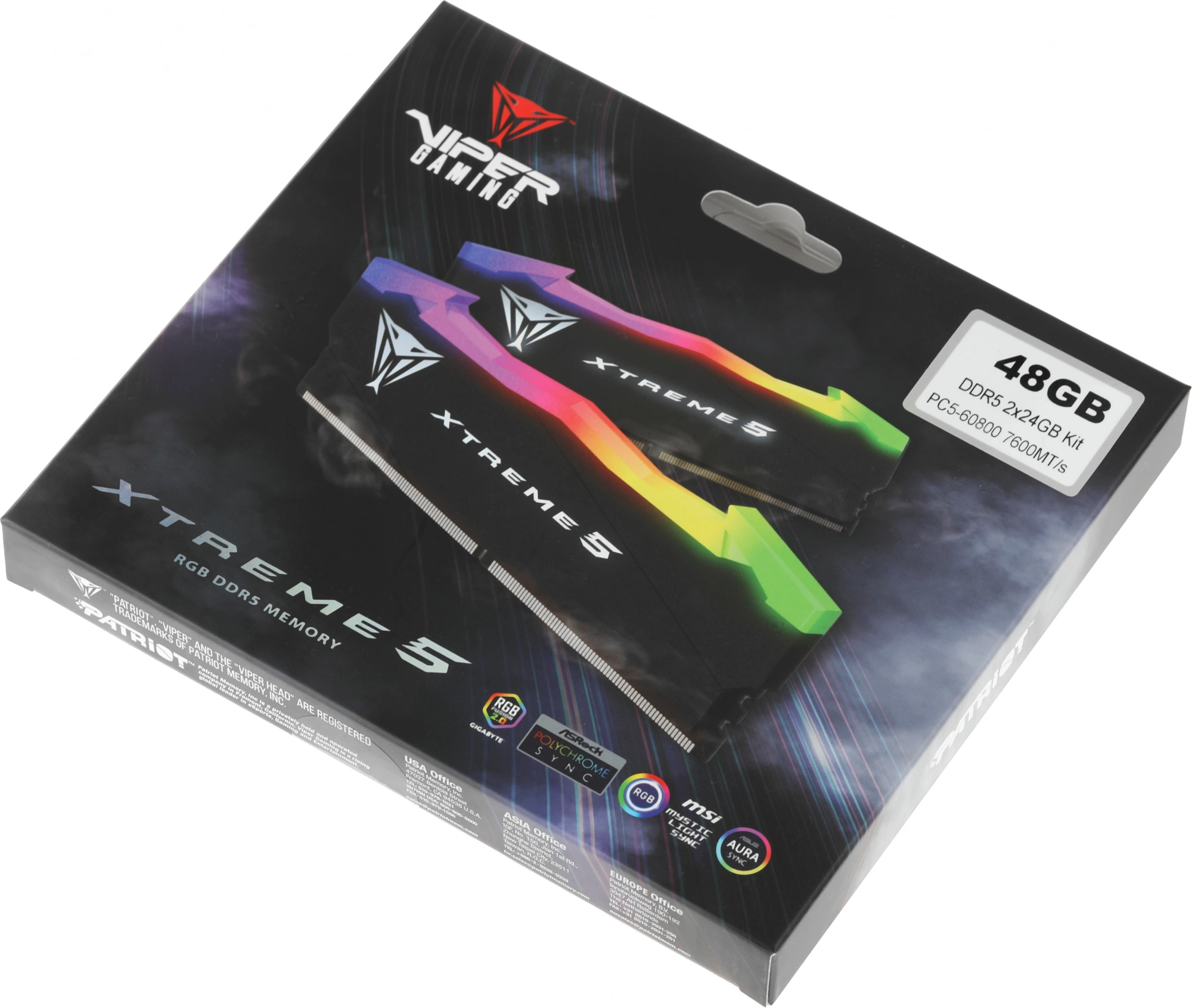 Модуль памяти DIMM DDR5-7600 48GB (24GBx2) RGB PVXR548G76C36K PATRIOT