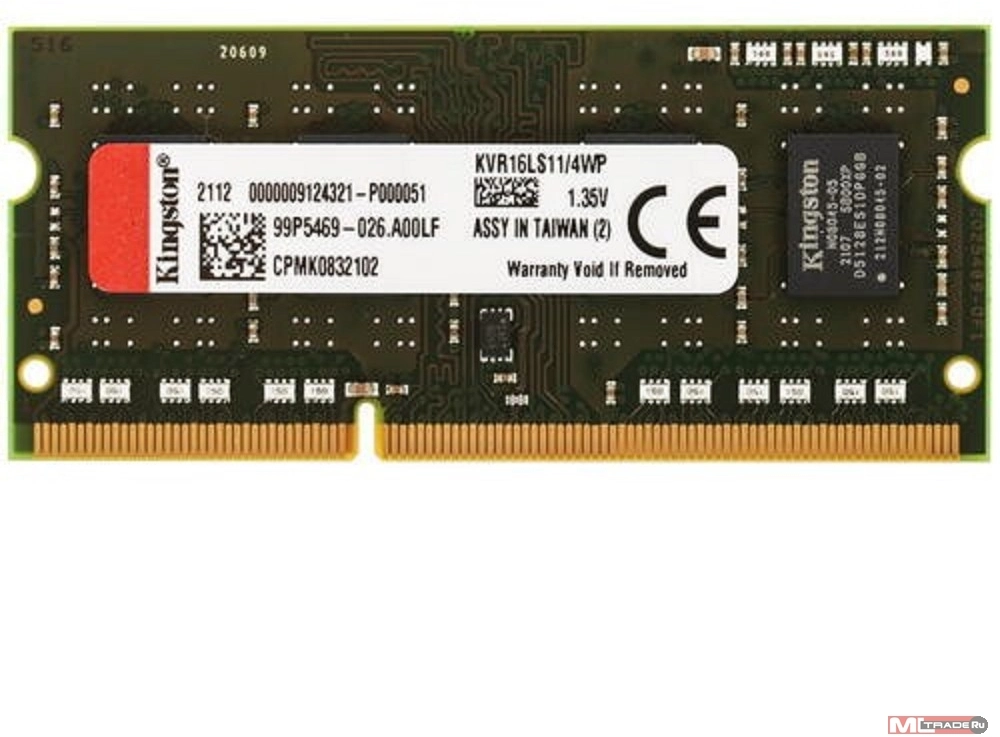 Модуль памяти Kingston DDR3 SODIMM 4GB KVR16LS11/4WP PC3-12800, 1600MHz, 1.35V