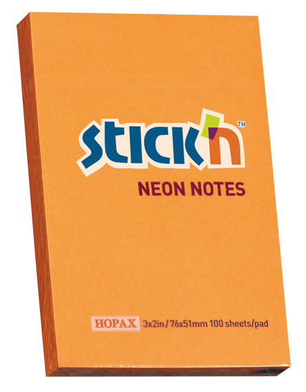Блок самоклеящийся бумажный Stick`n 21160 51x76мм 100лист. 70г/м2 неон оранжевый (продается кратно 12 шт.)