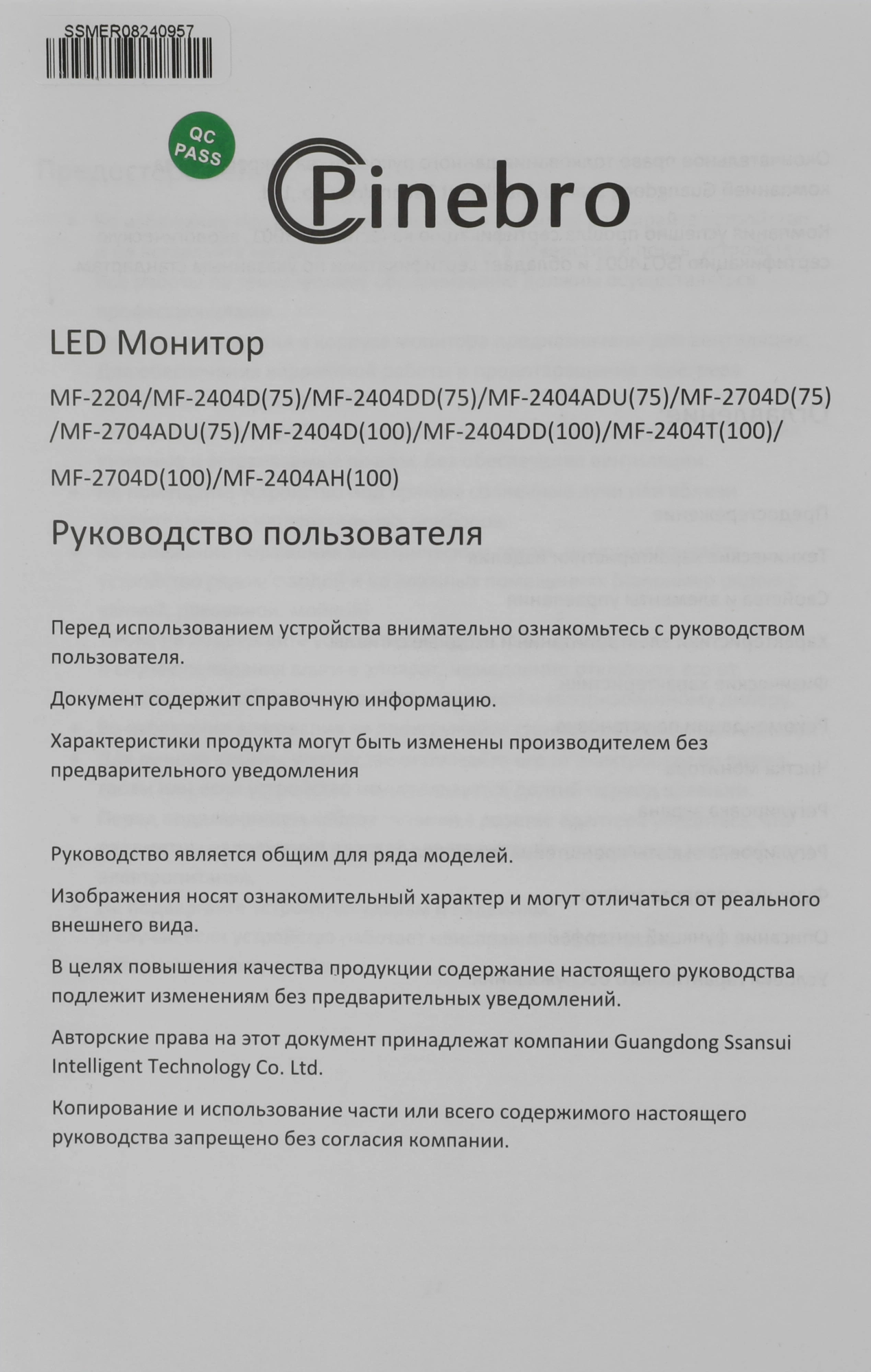 Монитор Pinebro 23.8" MF-2404DD черный IPS LED 5ms 16:9 DVI HDMI M/ M матовая 250cd 178гр/ 178гр 1920x1080 75Hz FreeSync VGA DP FHD 2.7кг
