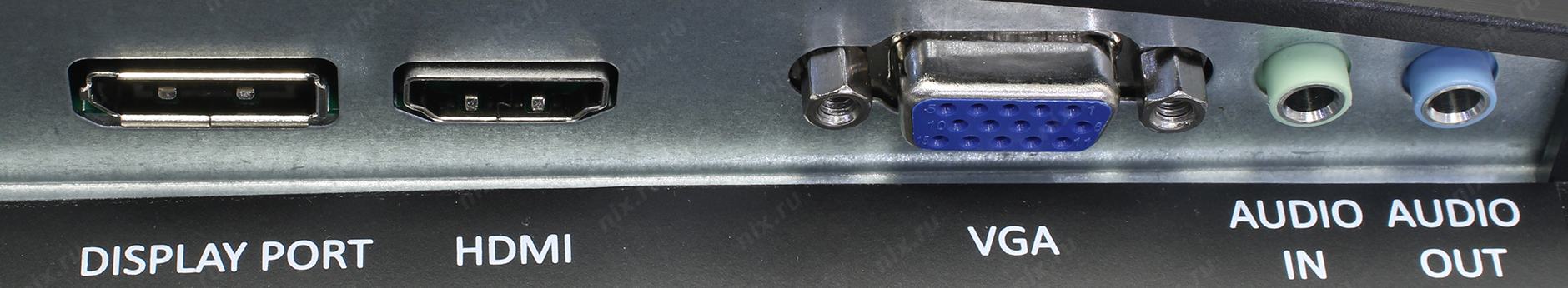 DisplayPort, HDMI, VGA (15-пиновый коннектор D-sub) , аудиовход миниджек 3.5 мм, аудиовыход миниджек 3.5 мм
