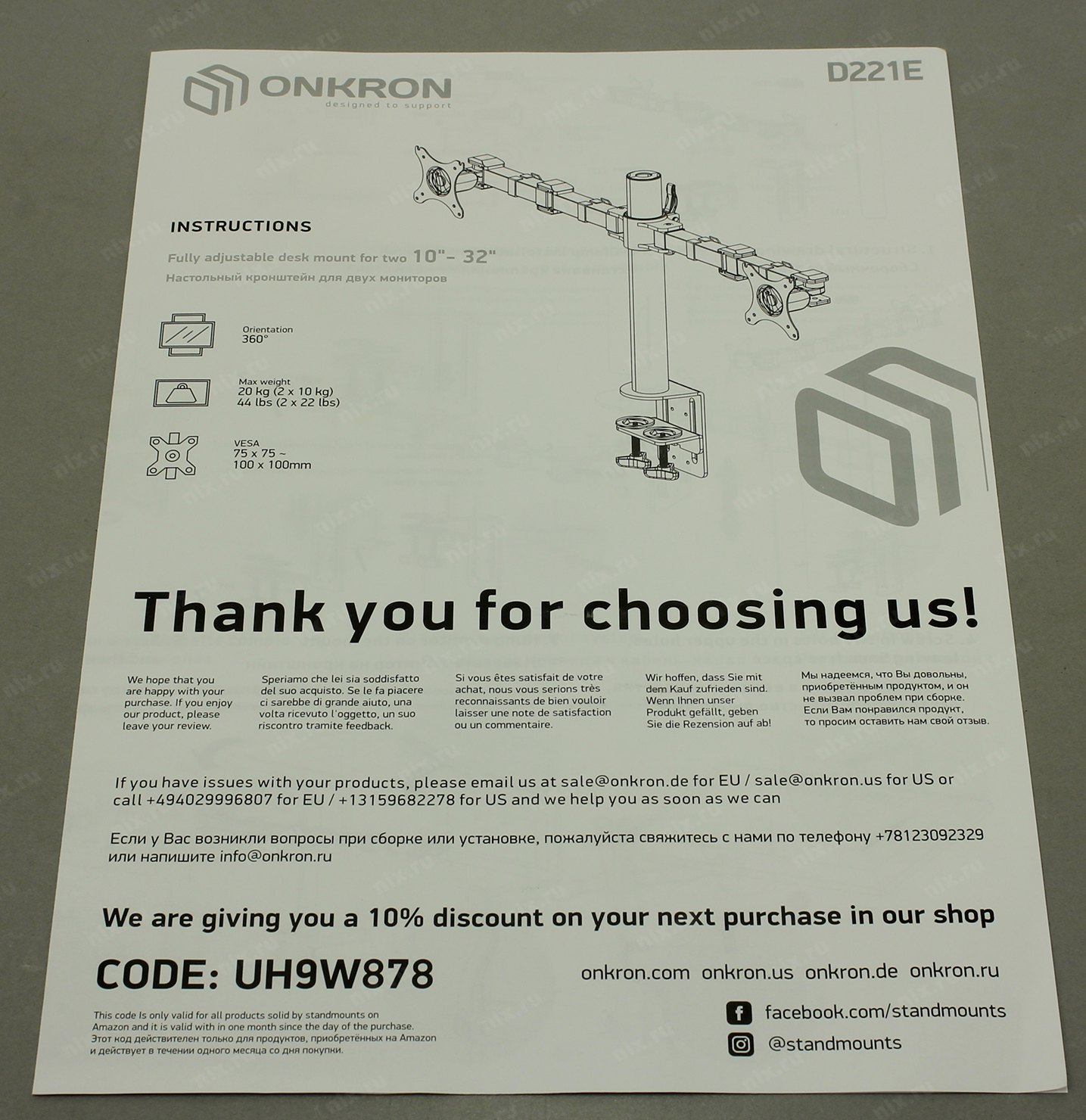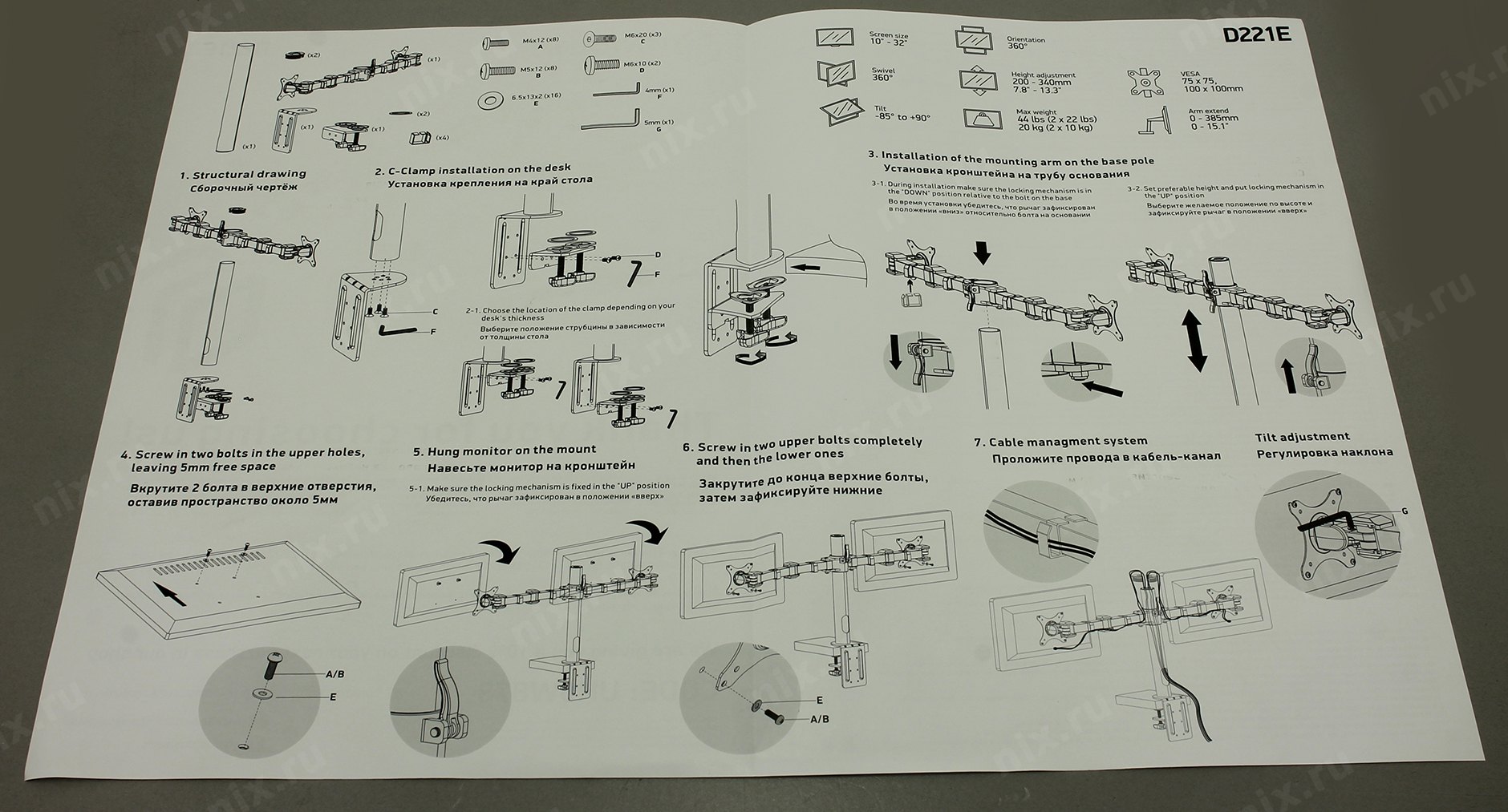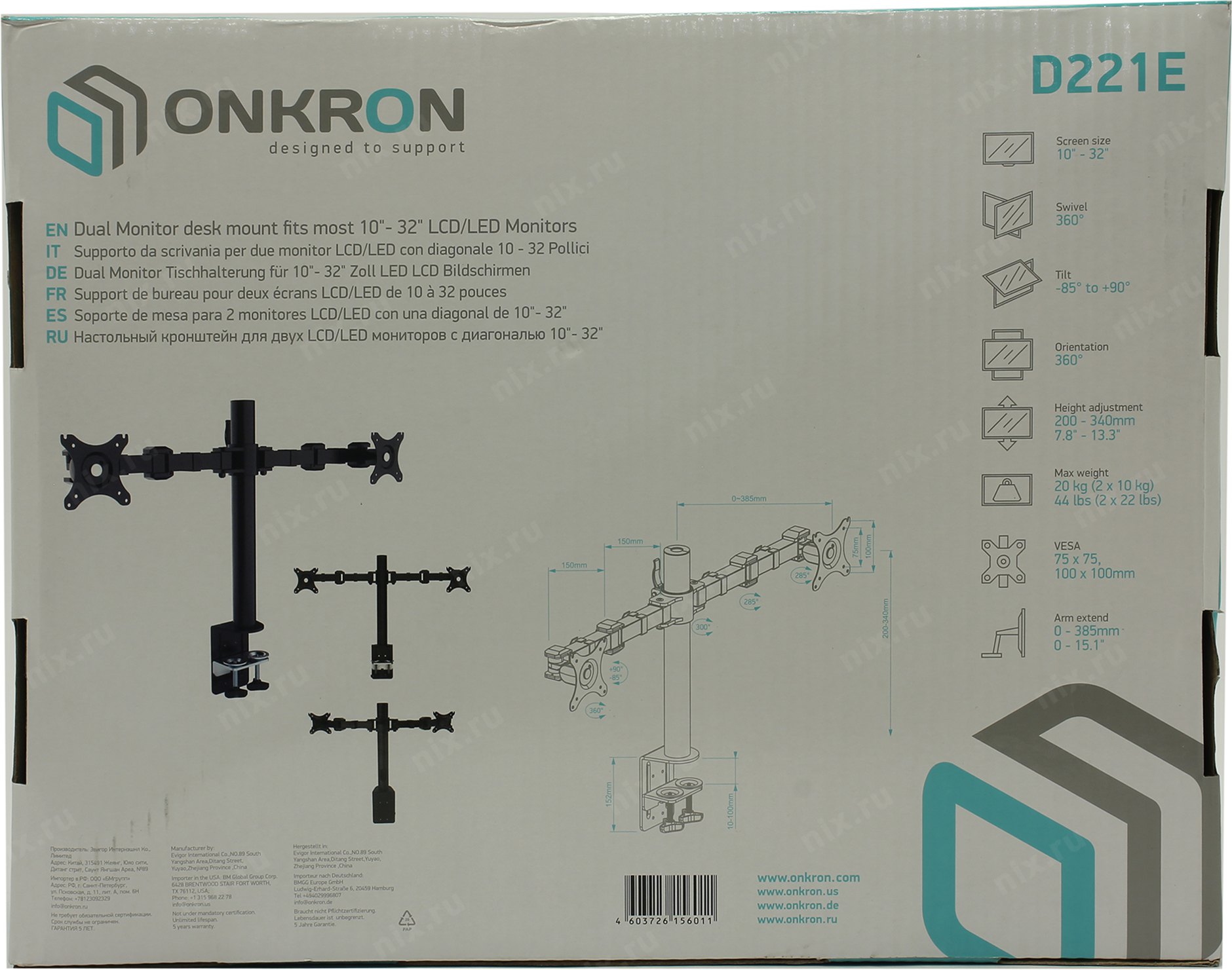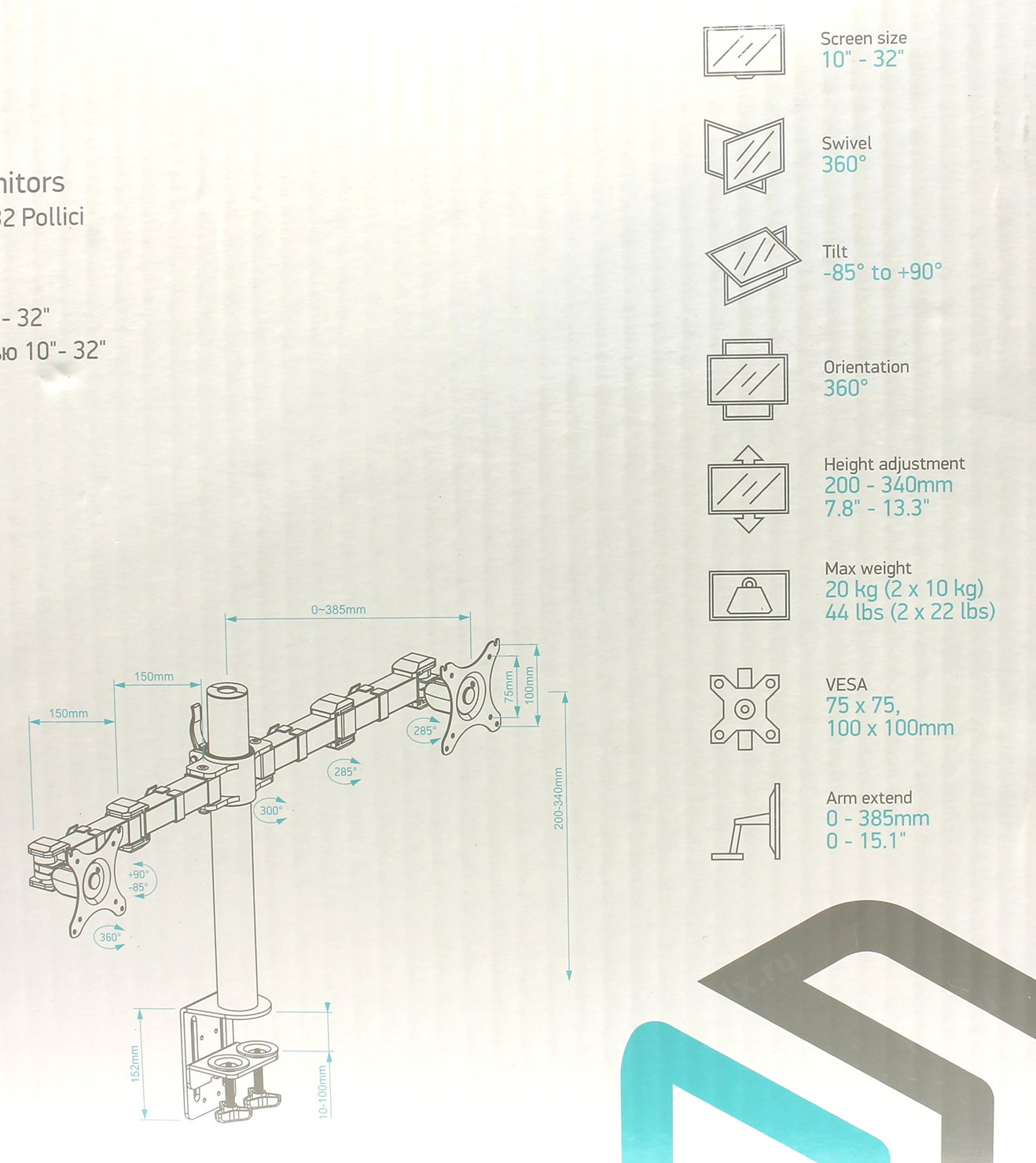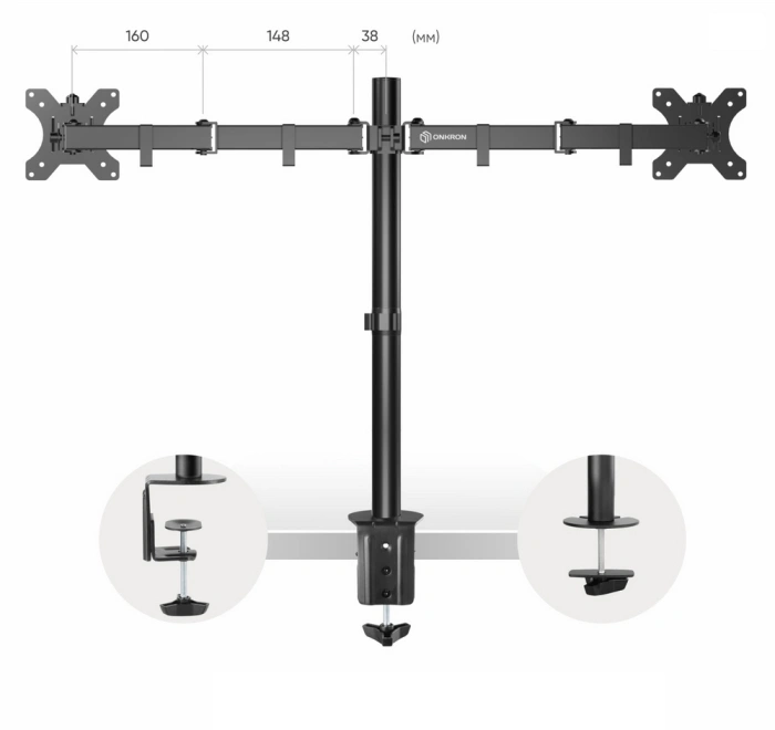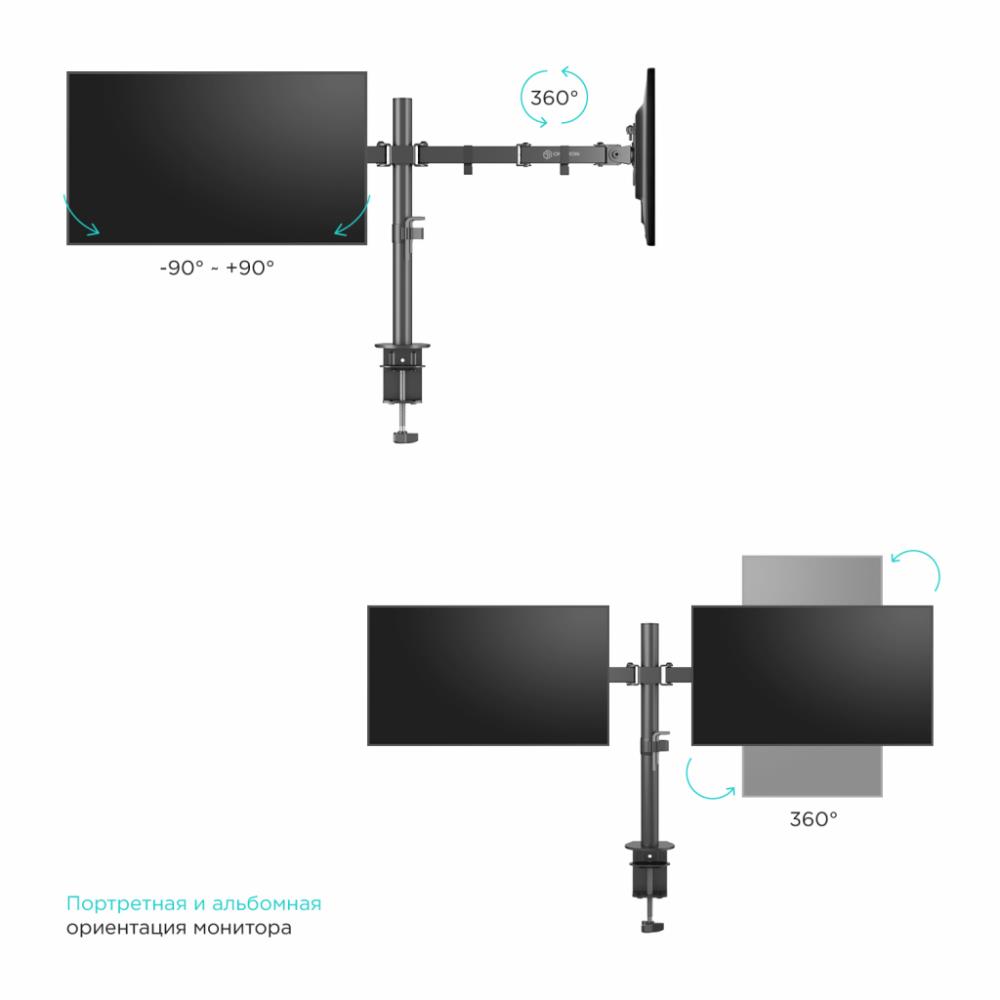 Настольный держатель для эргономичной регулировки положения 2 дисплеев с диагональю от 10 до 32 дюймов