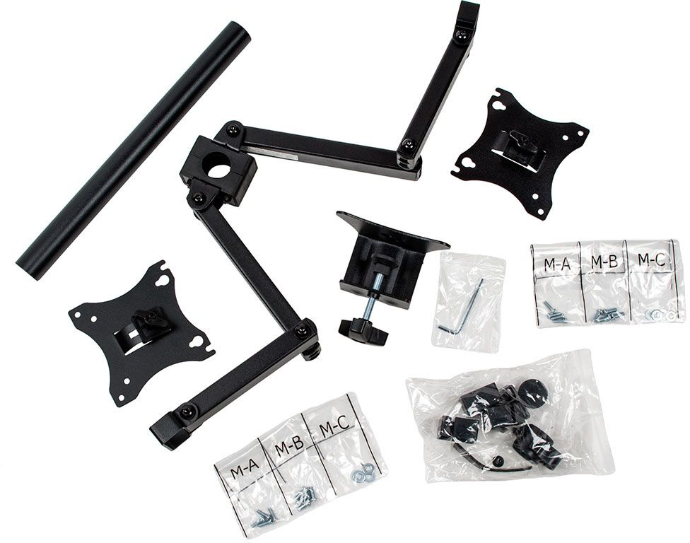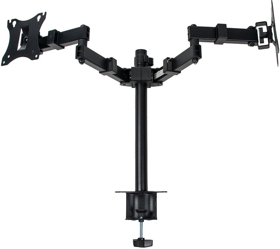Универсальное настольное крепление для 2-х мониторов. Надежная стальная конструкция- максимальная нагрузка 2х7 кг.