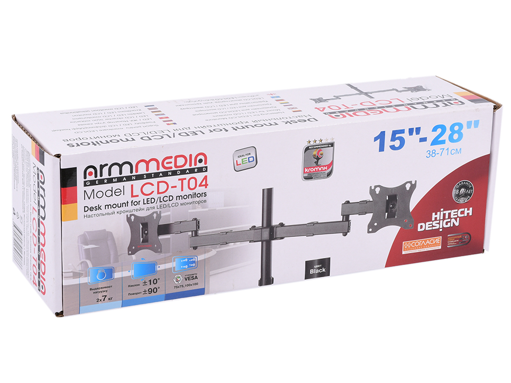 Крепления для мониторов Arm Media LCD-T04 черный 15"-28" макс.14кг настольный поворот и наклон верт.перемещ. [10222]