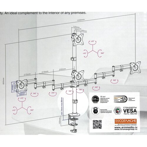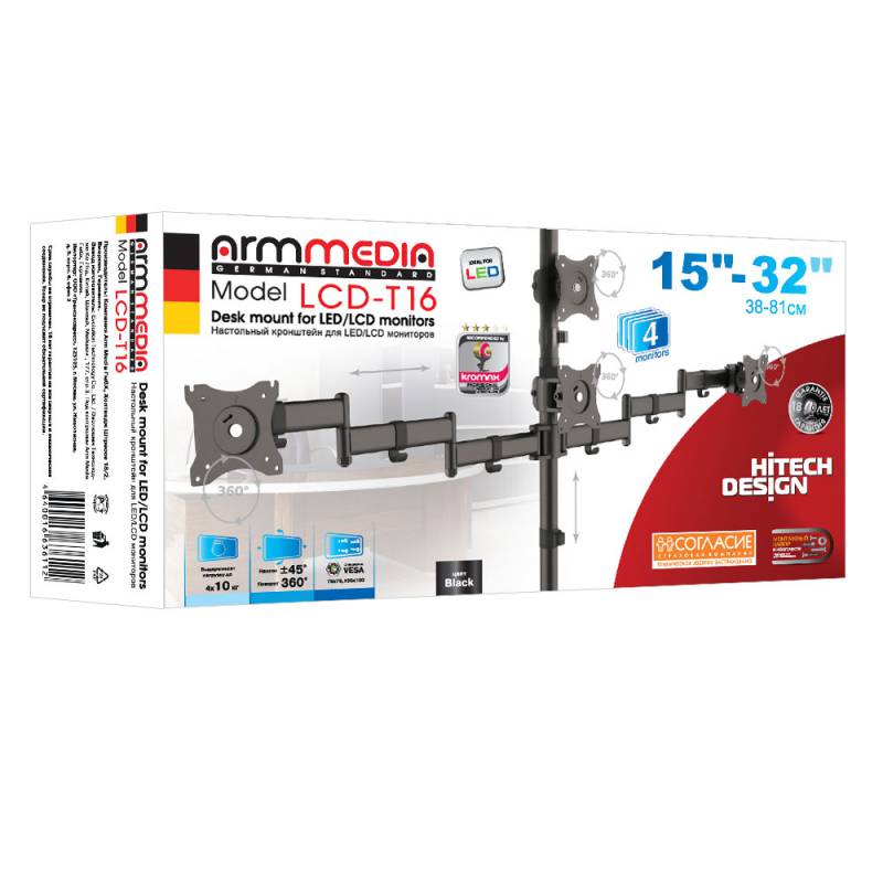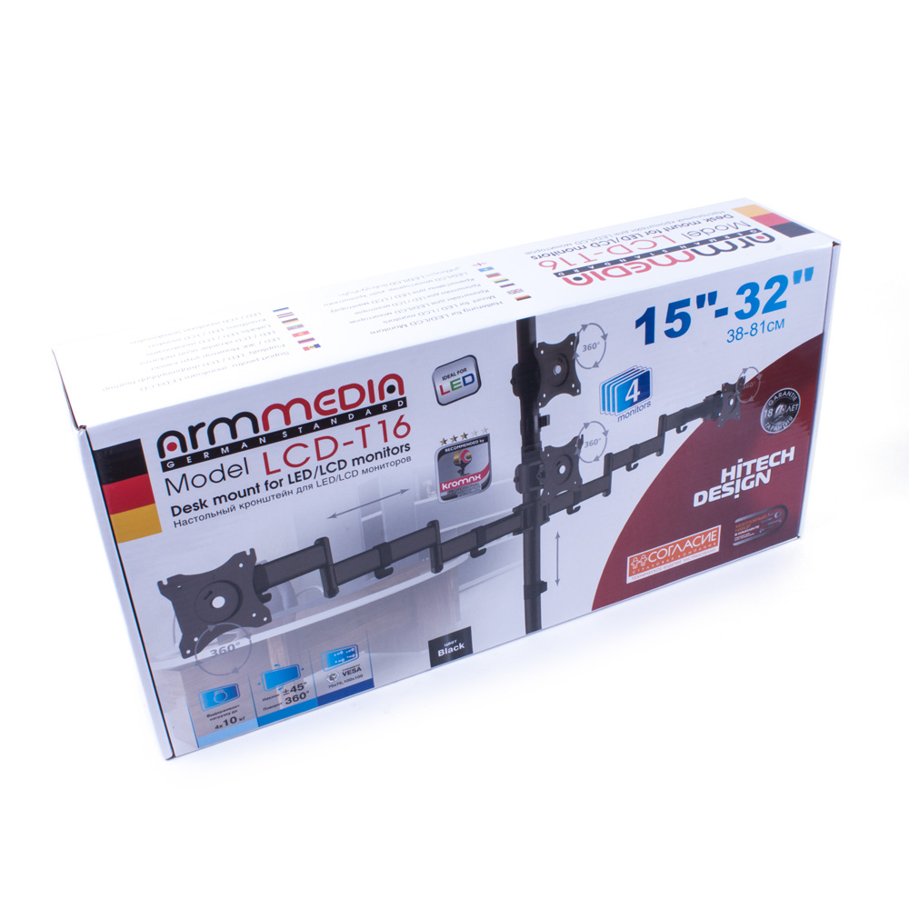 Крепеж Arm Media LCD-T16 черный 15"-27" макс.40кг настольный поворот и наклон верт.перемещ.