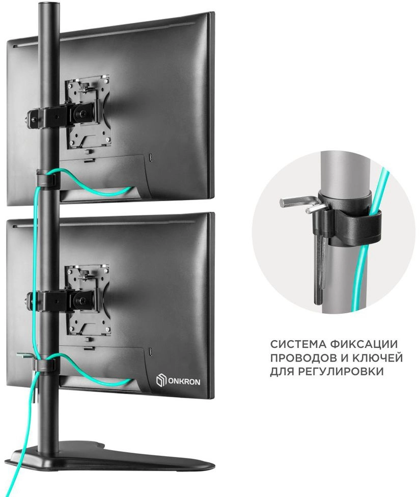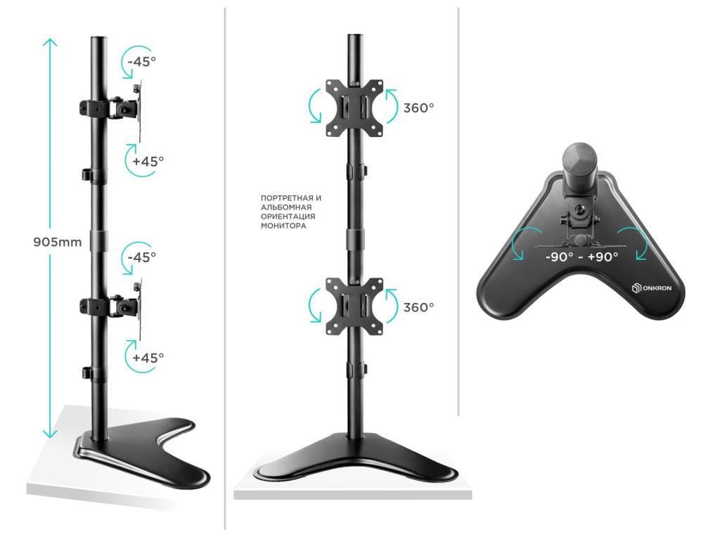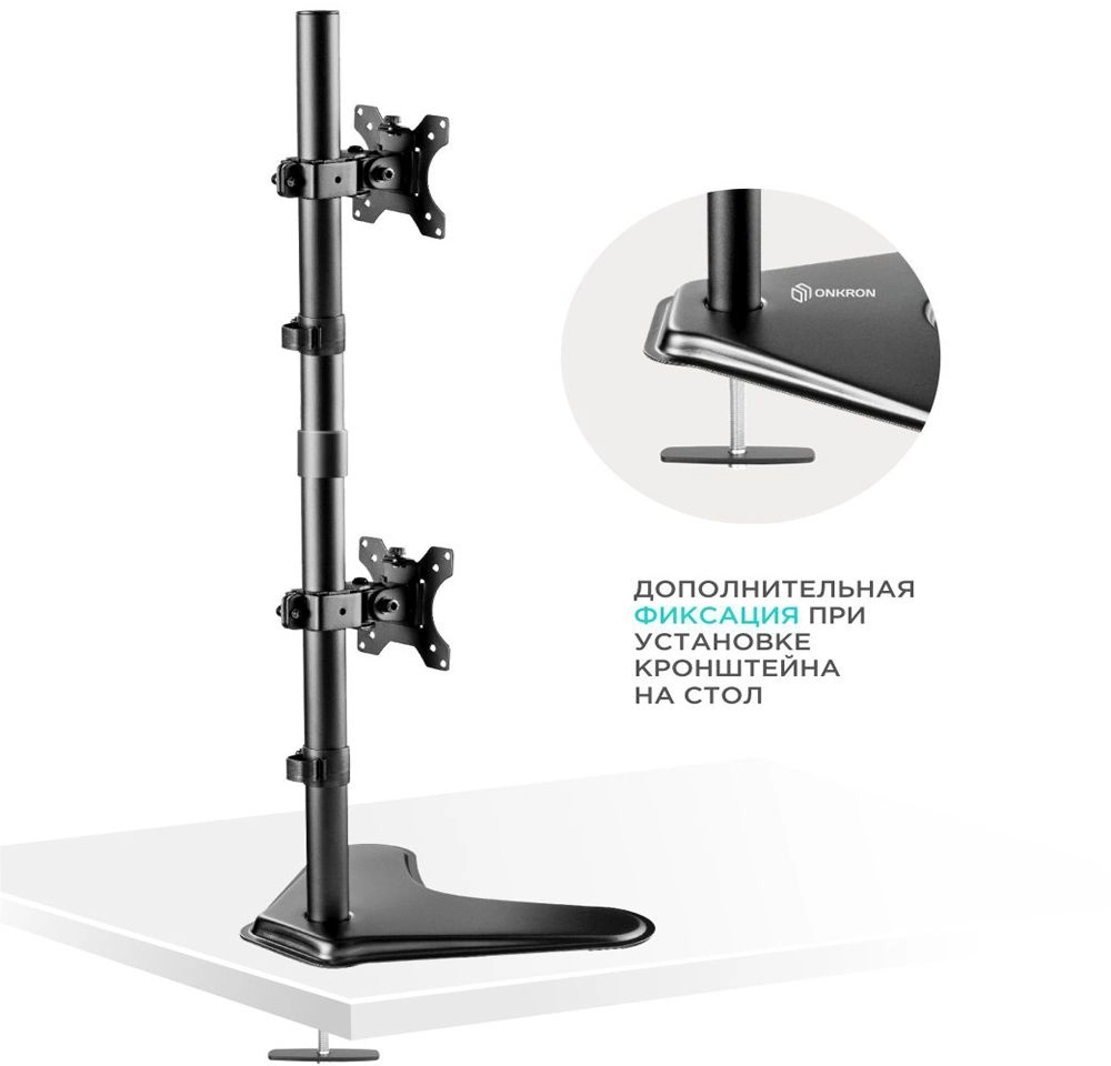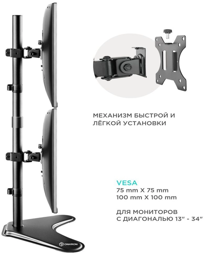 Крепления для мониторов ONKRON D208FS чёрный (Для мониторов диагональю 13"-34" Максимальная нагрузка: 2х8 кг (17.6 lbs) VESA: 75x75, 100х100мм) [4603728441740]