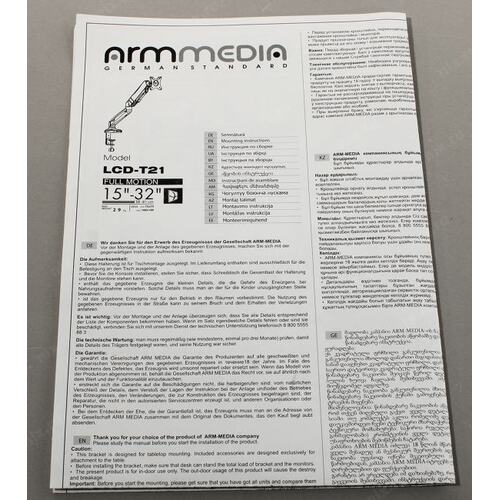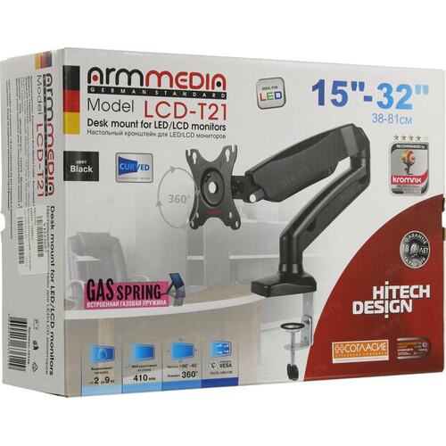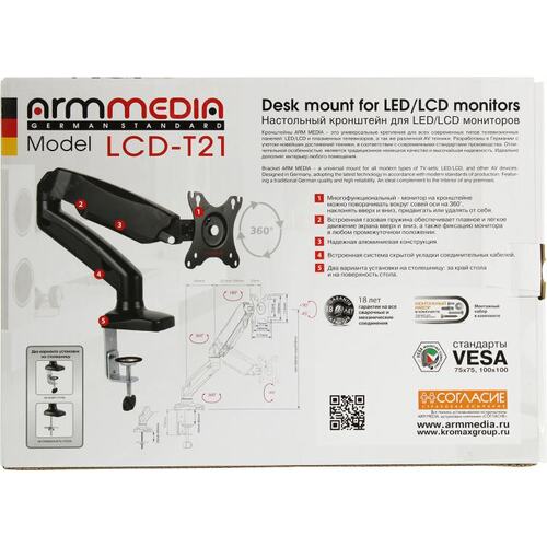 Кронштейн для мониторов Arm Media LCD-T21 черный 15"-32" макс.9кг настольный поворот и наклон верт.перемещ. 10158
