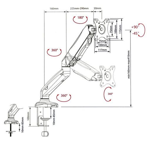 Настольный держатель для эргономичной регулировки положения дисплея с диагональю от 15 до 32 дюймов