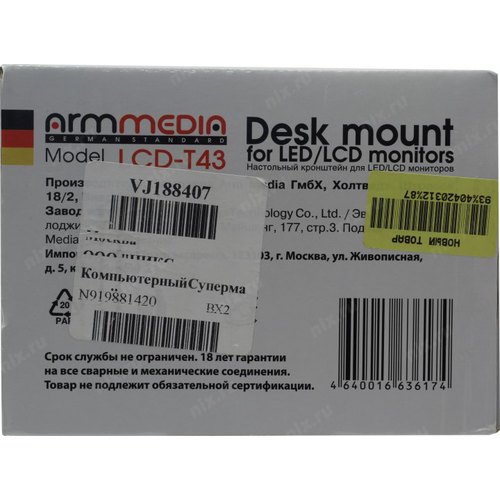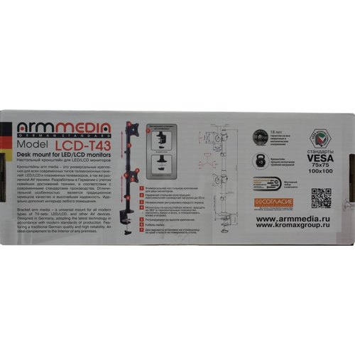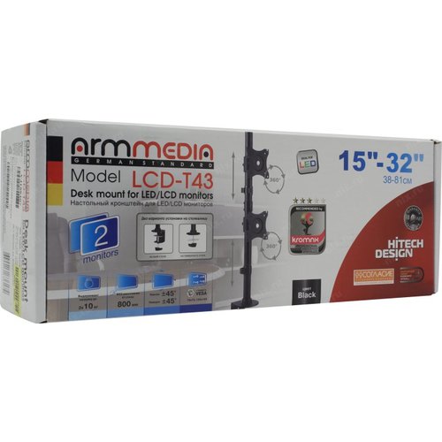 Кронштейн для мониторов Arm Media LCD-T43 черный 15"-32" макс.20кг настольный поворот и наклон верт.перемещ. 10166