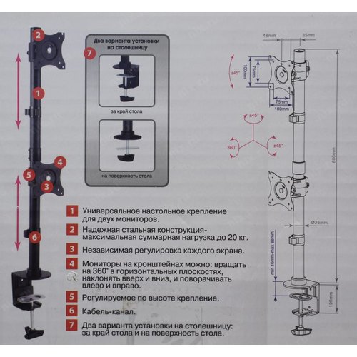 Настольный держатель для эргономичной регулировки положения 2 дисплеев с диагональю от 15 до 32 дюймов
