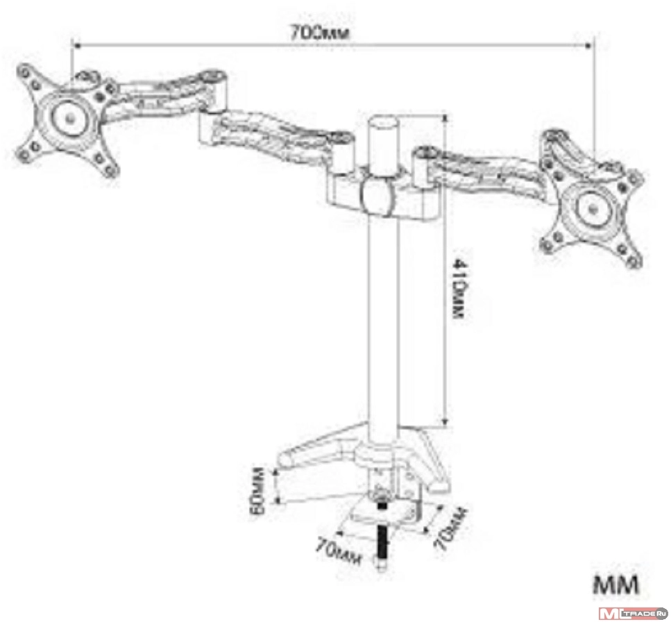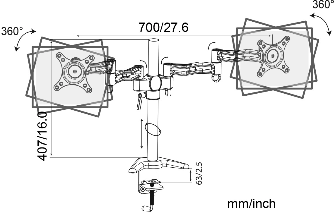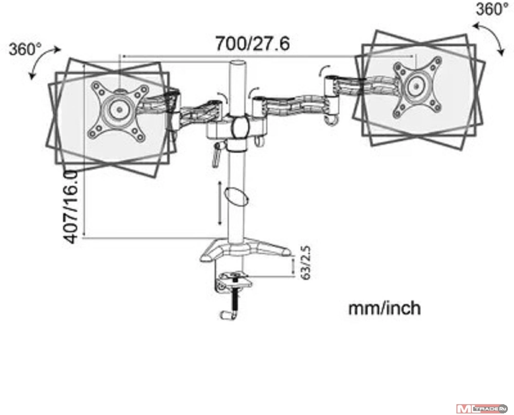 Кронштейн для мониторов Cactus CS-VM-D08-AL серебристый 13"-27" макс.8кг настольный поворот и наклон