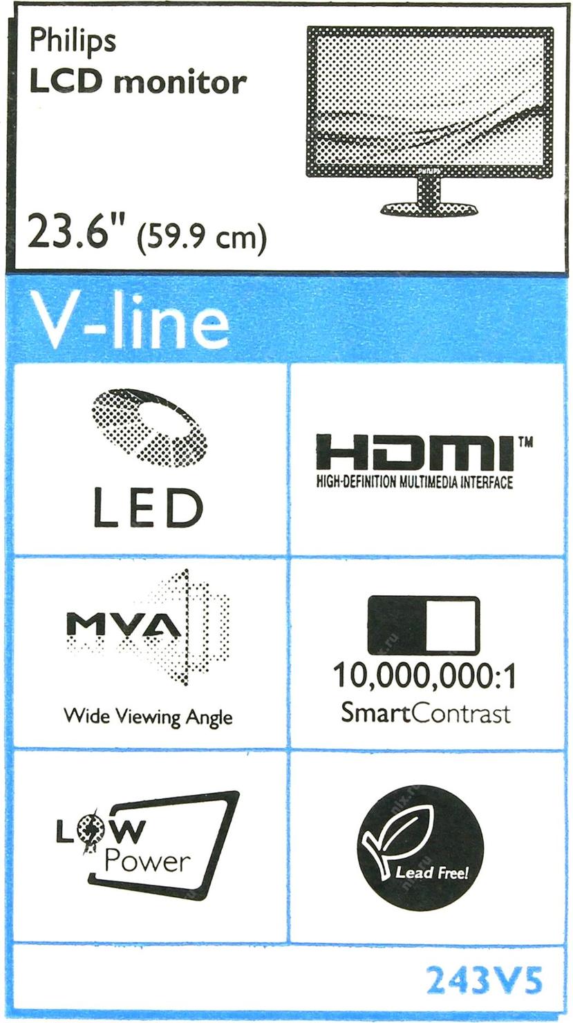 Монитор LCD 24" 243V5QHSBA(00/01) PHILIPS