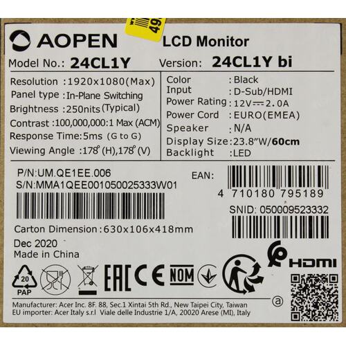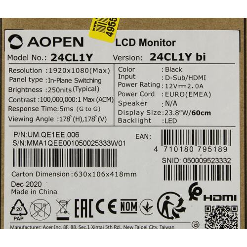 Монитор LCD 24" 24CL1YBI UM.QE1EE.006 AOPEN