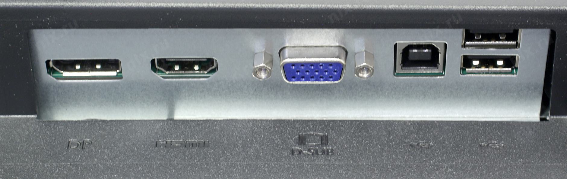 DisplayPort, HDMI, VGA (15-пиновый коннектор D-sub), аудиовход миниджек 3.5 мм, разъем 3.5 мм для подключения наушников